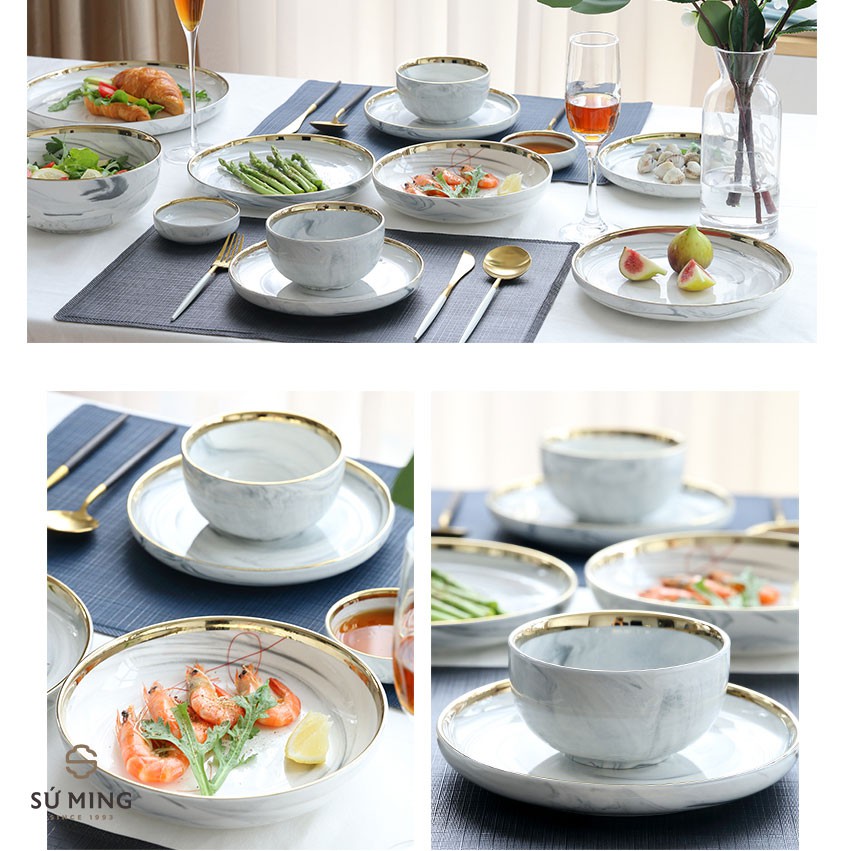Giới thiệu Bộ Bát Đĩa Sứ Đẹp 31 chi tiết Màu Ghi [BẮC ÂU] [CAO CẤP] sang trọng, viền vàng 24k, nhiều màu sắc lựa chọn.