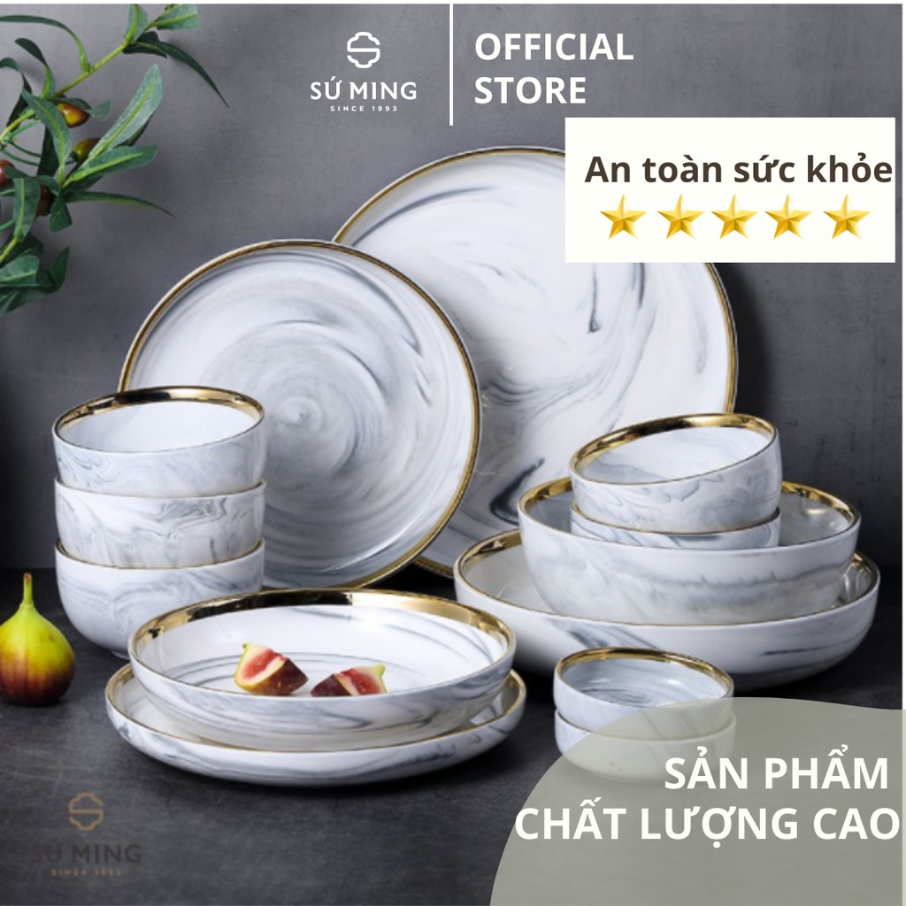 Bộ Bát Đĩa Sứ Đẹp 31 chi tiết Màu Ghi [BẮC ÂU] [CAO CẤP] sang trọng, viền vàng 24k, nhiều màu sắc lựa chọn.
