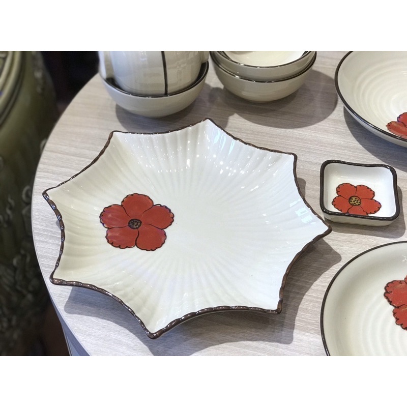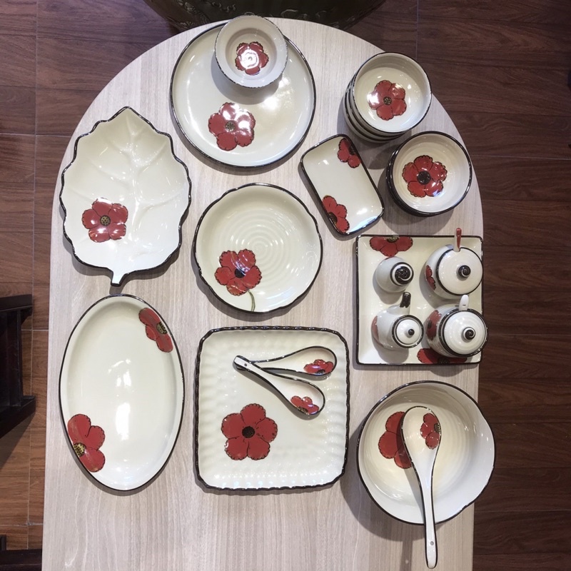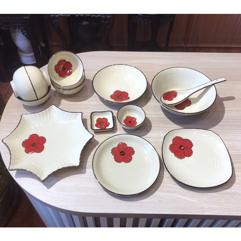 Bộ bát đĩa sứ hoa đỏ 3D shop tách lẻ set cho khách lựa chọn mua để mix set tuỳ ý ạKích cỡ shop ghi rõ ở mục phân loại kèm hình ảnh