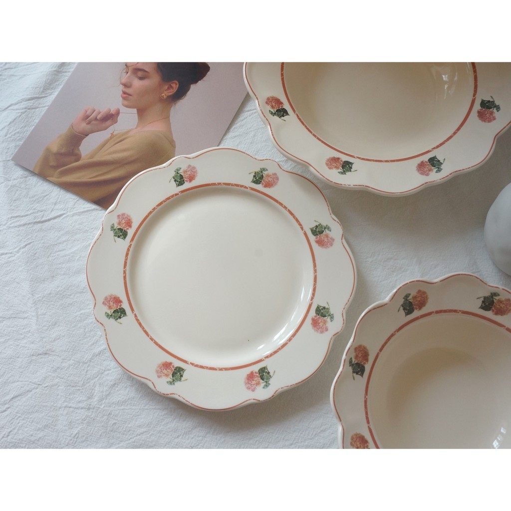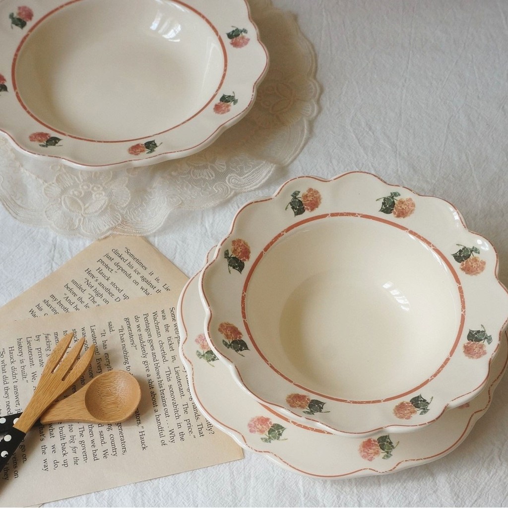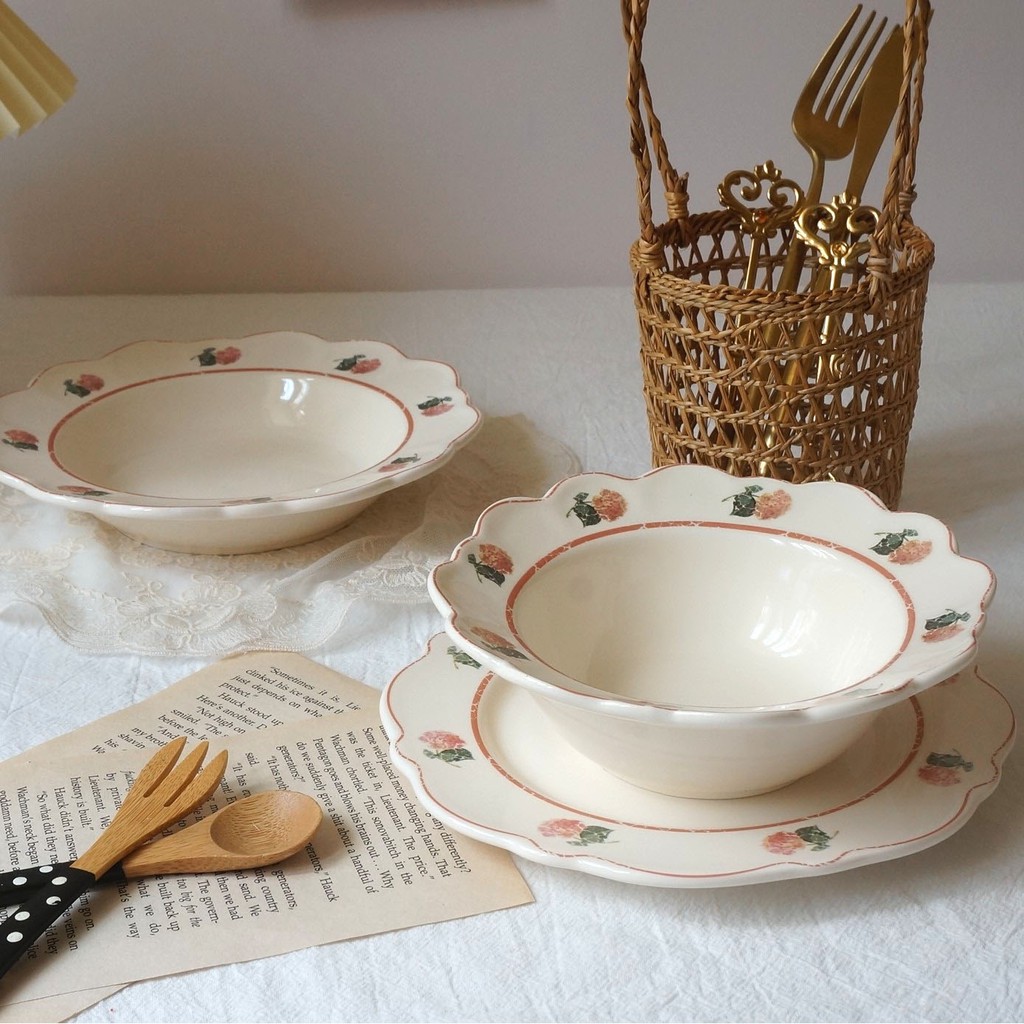 Nhà cửa & Đời sống > Bộ đồ bàn ăn > Tô || Bộ bát đĩa sứ hoa hồng Set bát đĩa hoa vintage phong cách Hàn QuốcCòn hàng