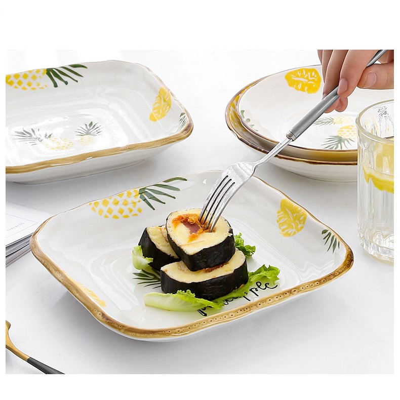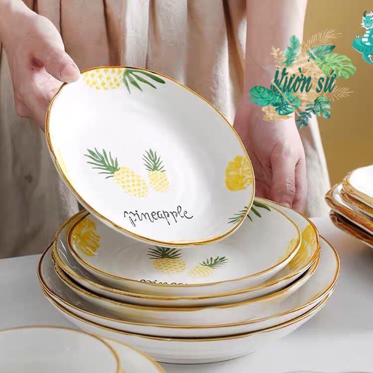 Nhà cửa & Đời sống > Bộ đồ bàn ăn > Dĩa || Bát đĩa sứ họa tiết dứa vàng, bát đựng canh, đồ ăn, hoa quả,... ( BÁN LẺ ) - VS407Còn hàng