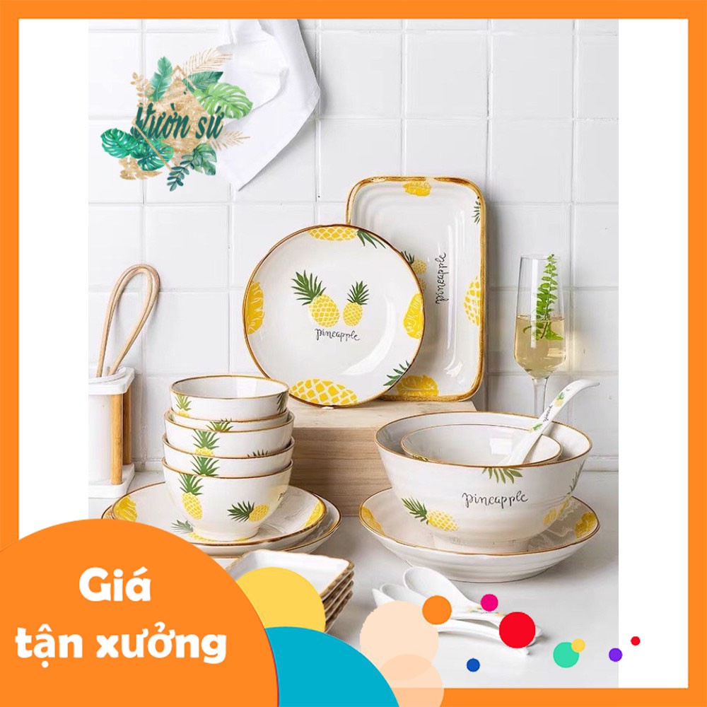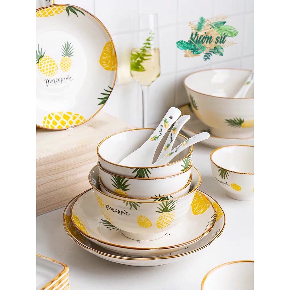 Bát đĩa sứ họa tiết dứa vàng, bát đựng canh, đồ ăn, hoa quả,... ( BÁN LẺ ) - VS407
