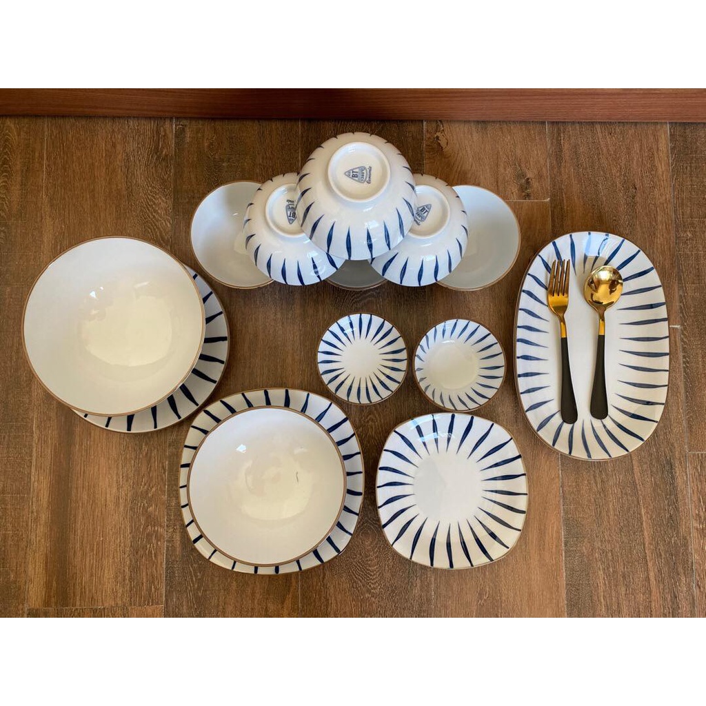 Giới thiệu Bộ Bát Đĩa Sứ Họa Tiết Kẻ [Bát Tràng] Kiểu Dáng Mới,Họa Tiết Sang Trọng,Men Dầy Dặn,Chụp Ảnh Check In Cực Đẹp