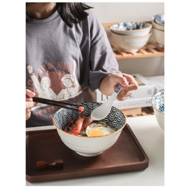 Nhà cửa & Đời sống > Bộ đồ bàn ăn > Tô || Bộ bát đĩa sứ hoạ tiết kẻ cổ điển sang trọng phong cách Bắc Âu, chén tô vintage (có tách lẻ)Còn hàng