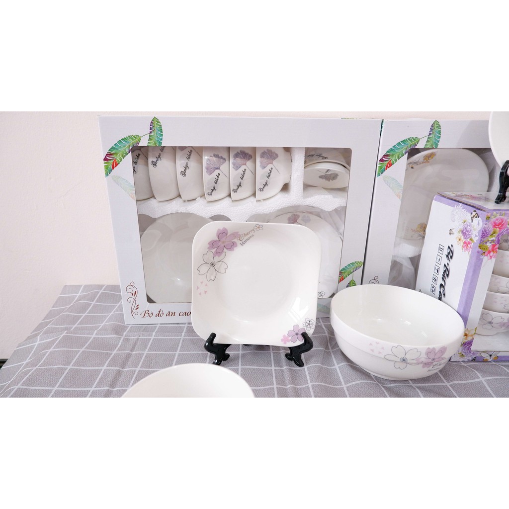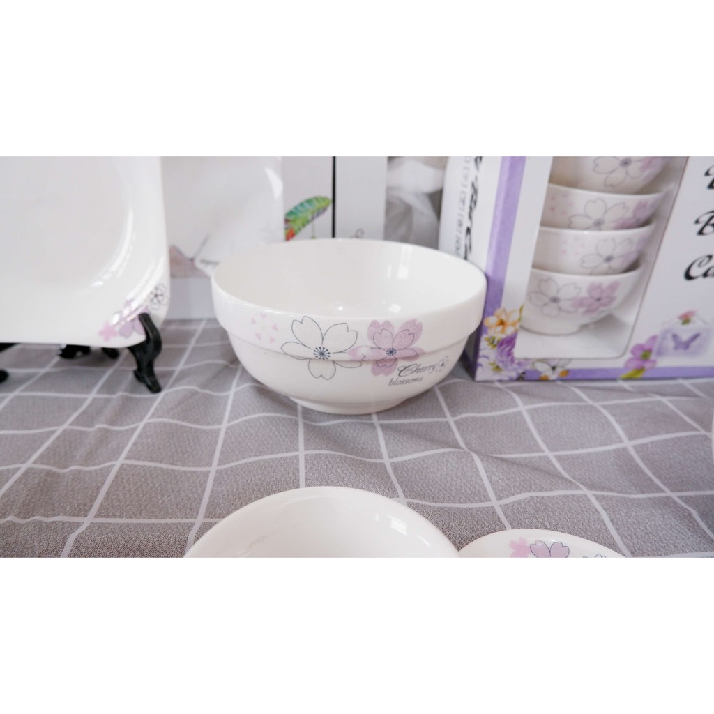 Bộ Bát Đĩa Sứ Hoa Tím 5 Cánh[BÁT TRÀNG]Dùng được lò vi sóng,máy rửa bát,có hộp đẹp làm quà tặng cực sang trọng,đẳng cấp