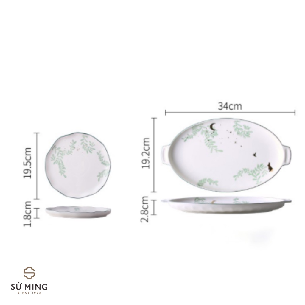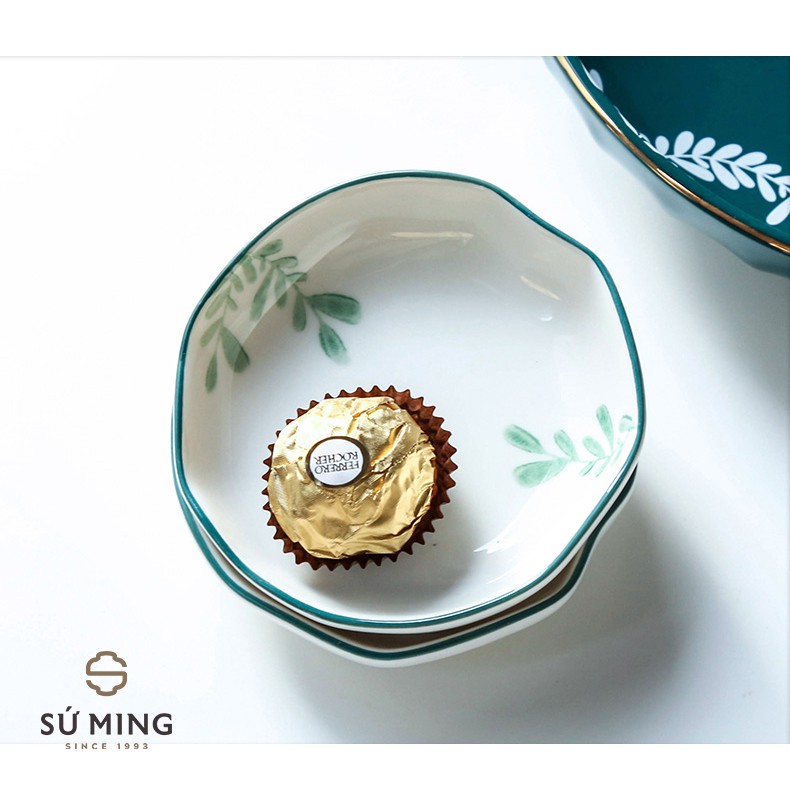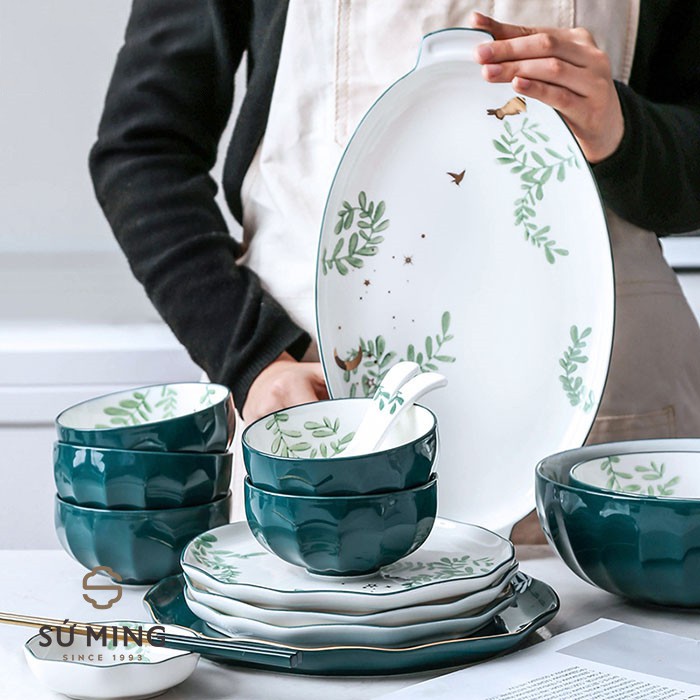 Bộ Bát Đĩa Sứ Lá Xanh Ngọc Lục Bảo [BẮC ÂU] [CAO CẤP] 26 chi tiết sang trọng, viền vàng 24k, nhiều màu sắc lựa chọn.