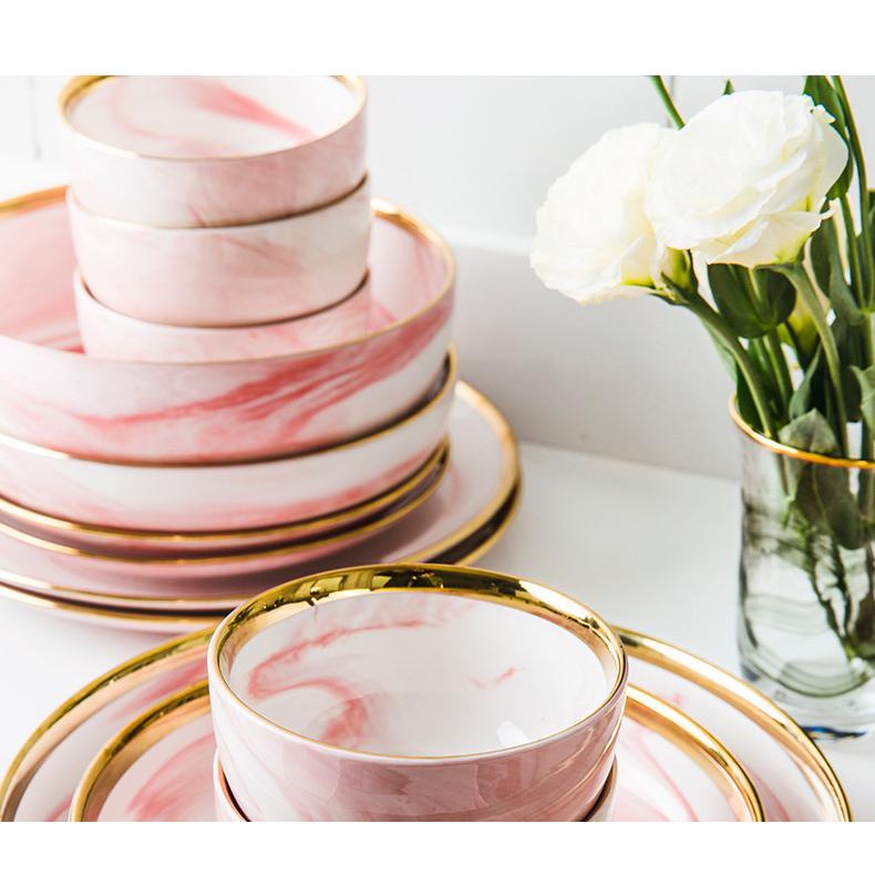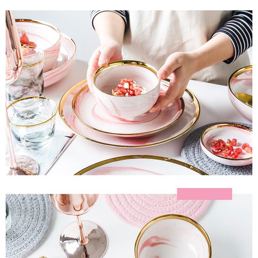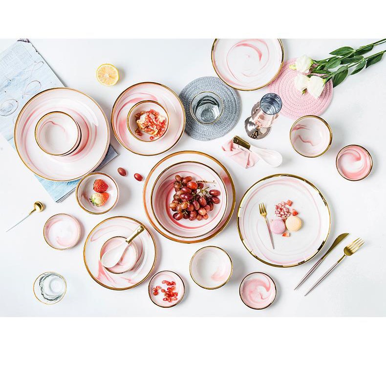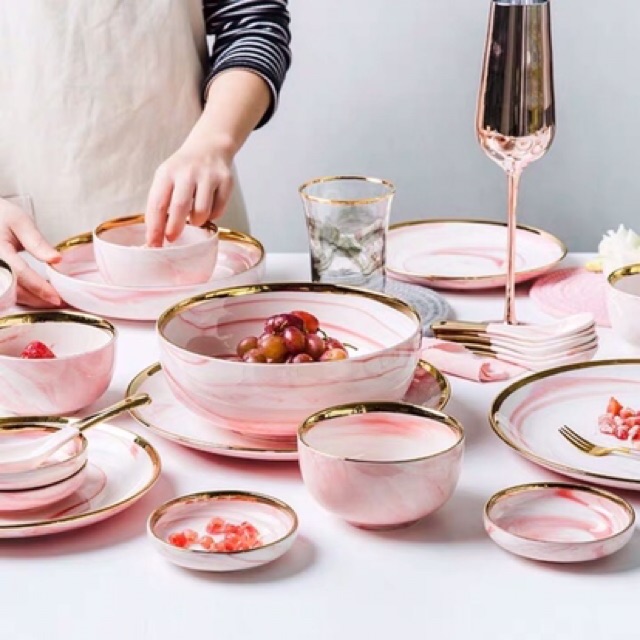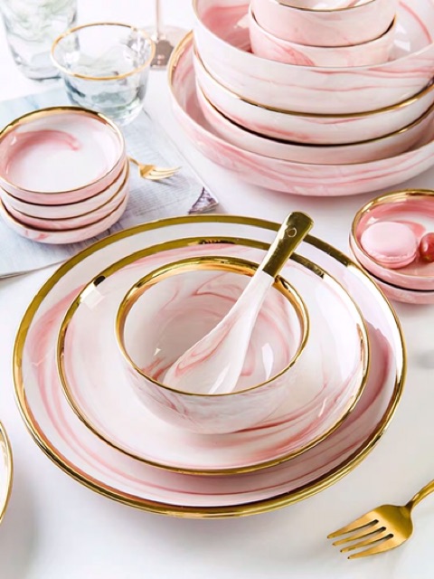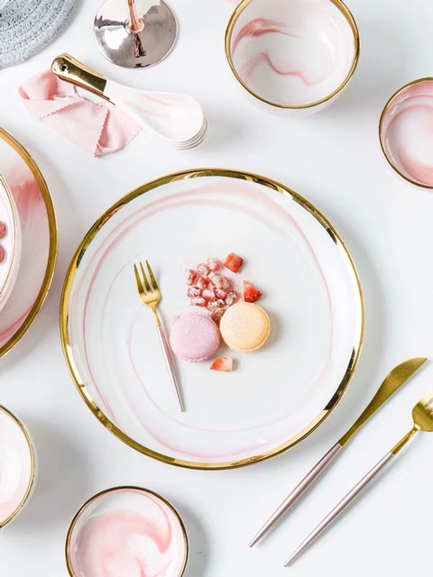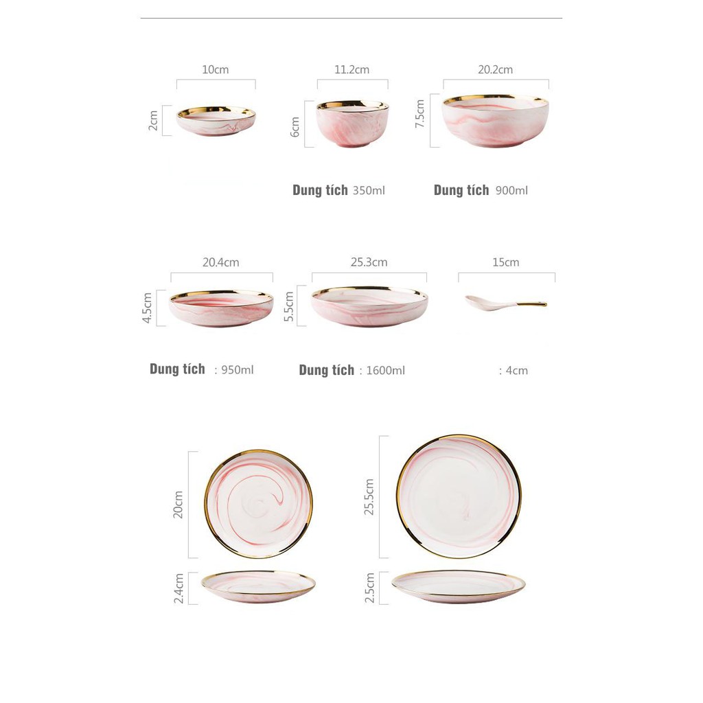 Nhà cửa & Đời sống > Bộ đồ bàn ăn > Dĩa || Bát đĩa sứ lẻ vân đá hồng cẩm thạch cao cấp - VS307Còn hàng
