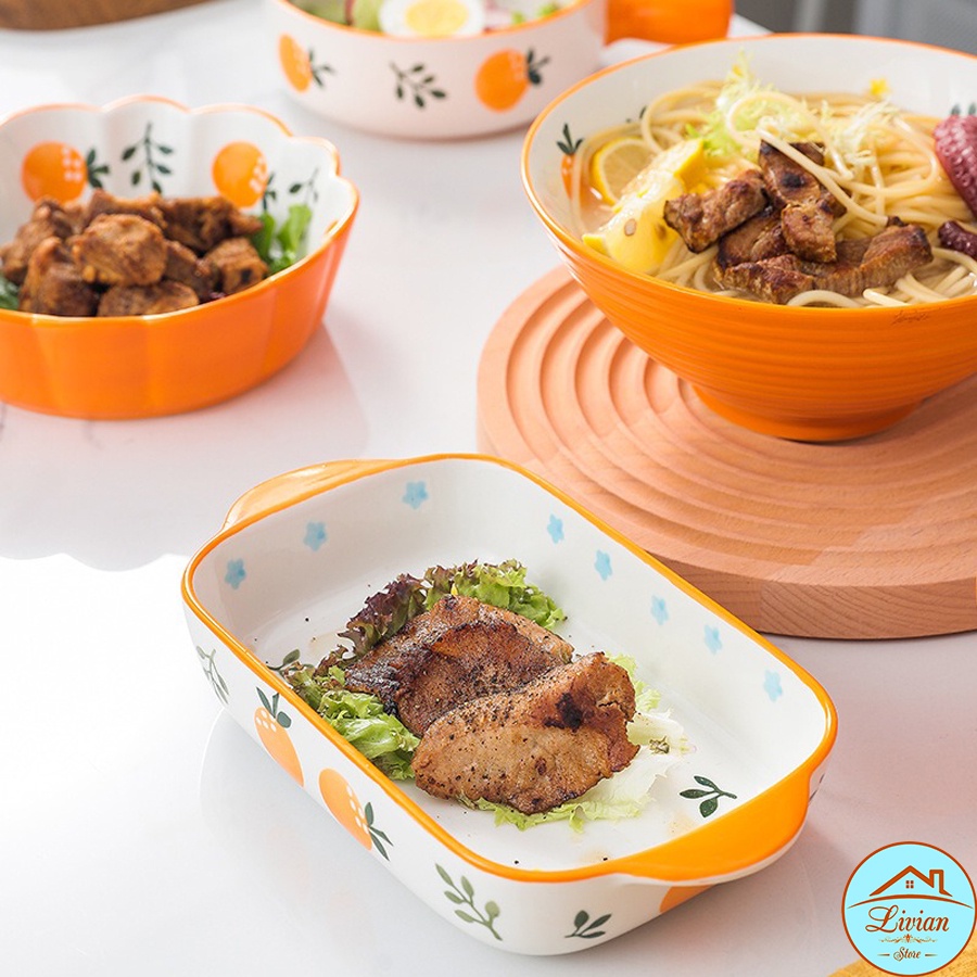Nhà cửa & Đời sống > Bộ đồ bàn ăn > Dĩa || Bát đĩa sứ, tô sứ họa tiết quả cam tươi tắn - trang trí bàn ăn cực xinhCòn hàng