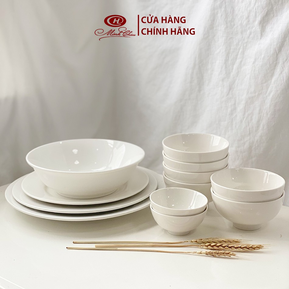 Bộ Bát Đĩa Sứ Trắng Trơn - 12 Món - Sứ Minh Châu