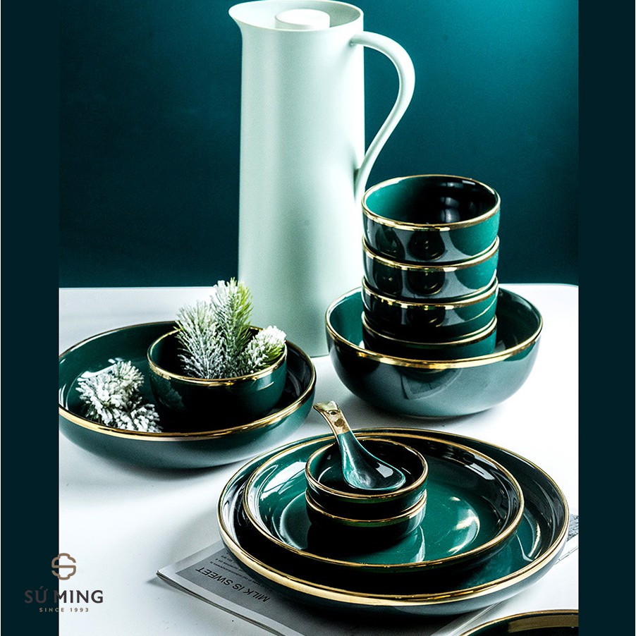 Bộ Bát Đĩa Sứ Xanh Ngọc Lục Bảo [BẮC ÂU] [CAO CẤP] sang trọng, viền vàng 24k, nhiều màu sắc lựa chọn.
