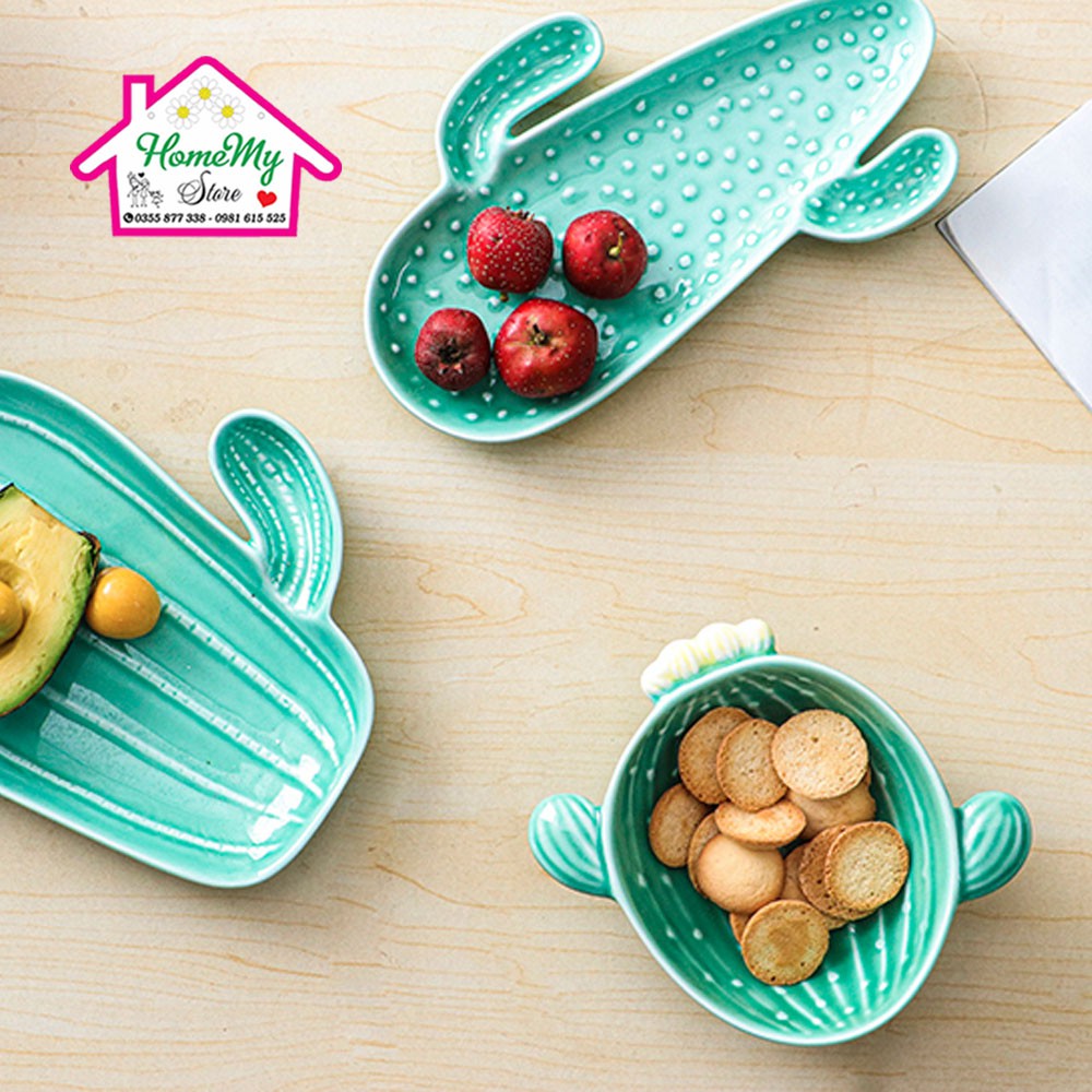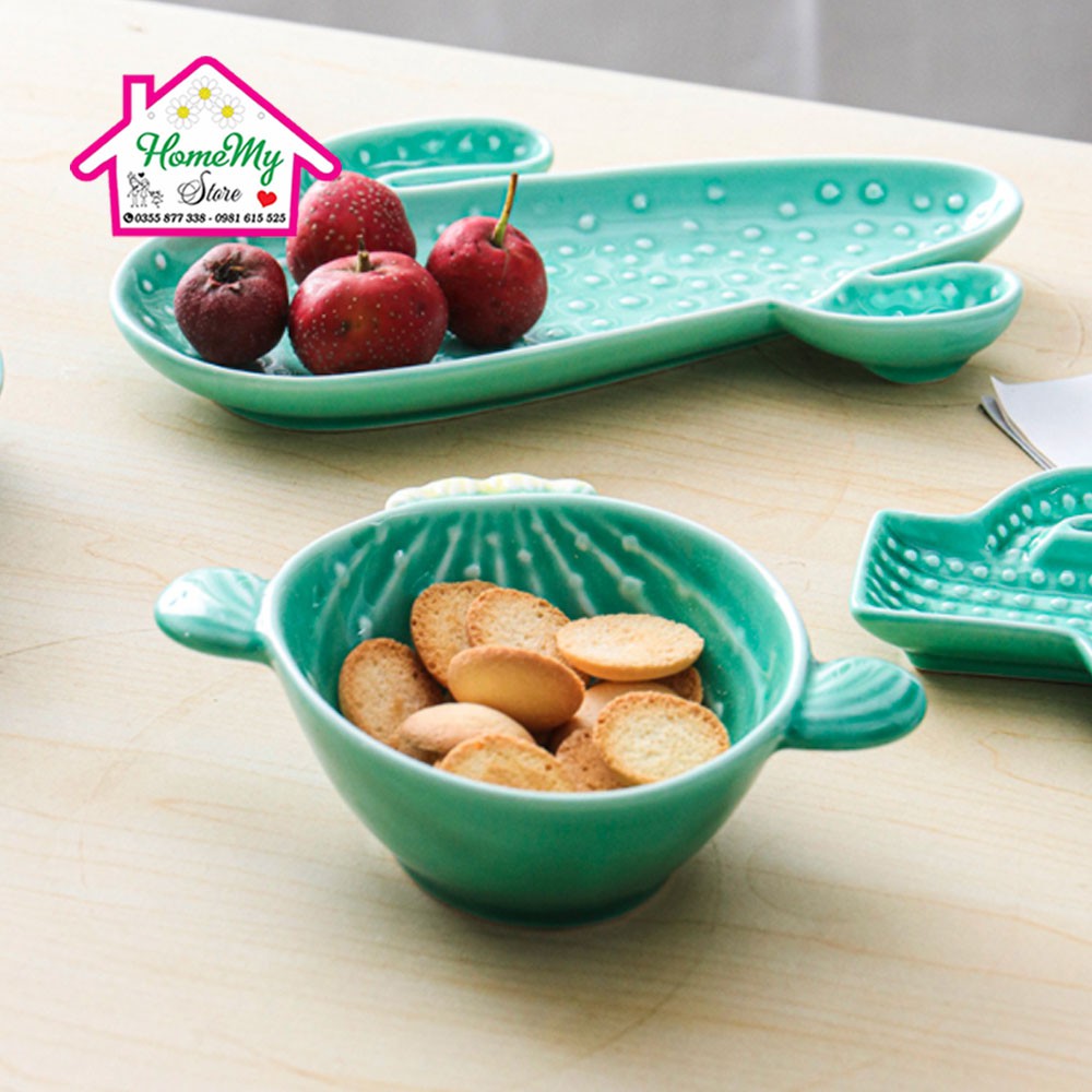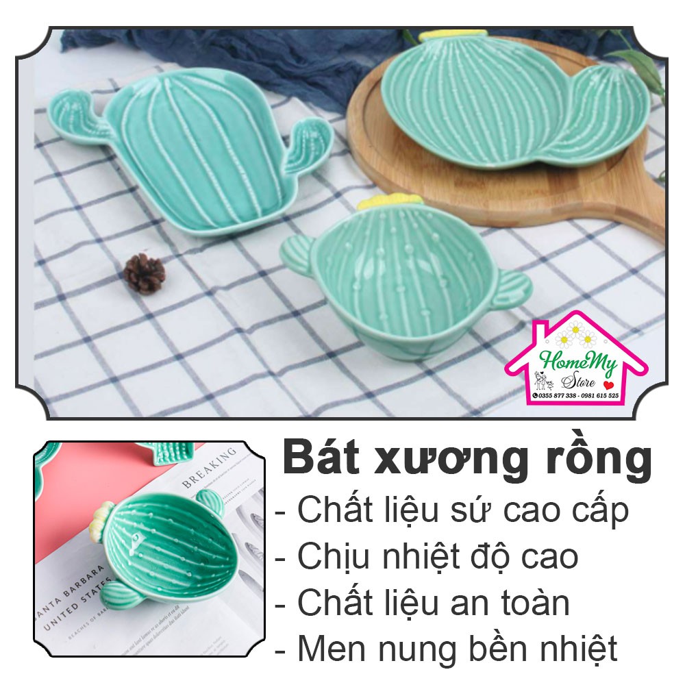 Bát Đĩa Sứ Xương Rồng Ăn Mì, Ăn Dặm, Decor Bàn Ăn Dễ Thương