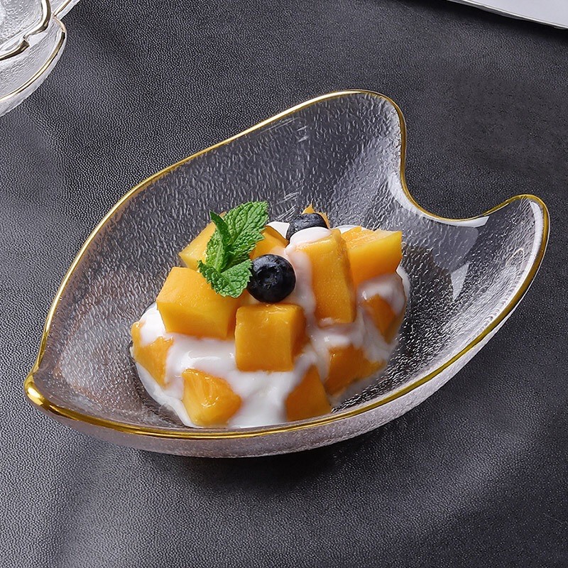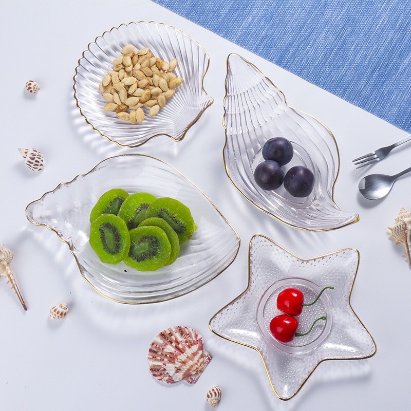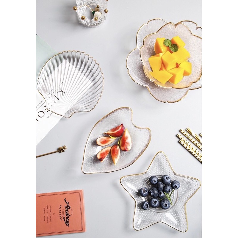 Nhà cửa & Đời sống > Bộ đồ bàn ăn > Dĩa || Bộ bát đĩa thuỷ tinh nhiều hình xinh xắn viền vàng cao cấpCòn hàng