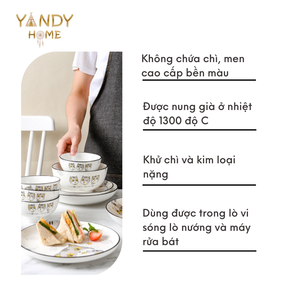 Nhà cửa & Đời sống > Bộ đồ bàn ăn > Tô || [Mã BMBAU50 giảm 7% đơn 150K] Bát đĩa tô chén gốm sứ YANDY HOME BB14 chất men cao cấp họa tiết Angry Cat cuteCòn hàng
