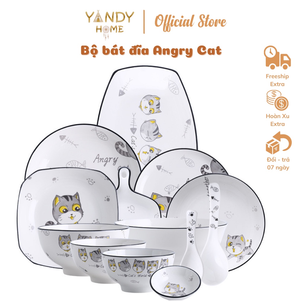 Bát đĩa sứ YANDY HOME BB14 chất men cao cấp họa tiết Angry Cat, chén đĩa tô sứ ngộ nghĩnh mèo cuteQUÝ KHÁCH CHỌN TỪNG MÓN KHI ĐẶT HÀNG.