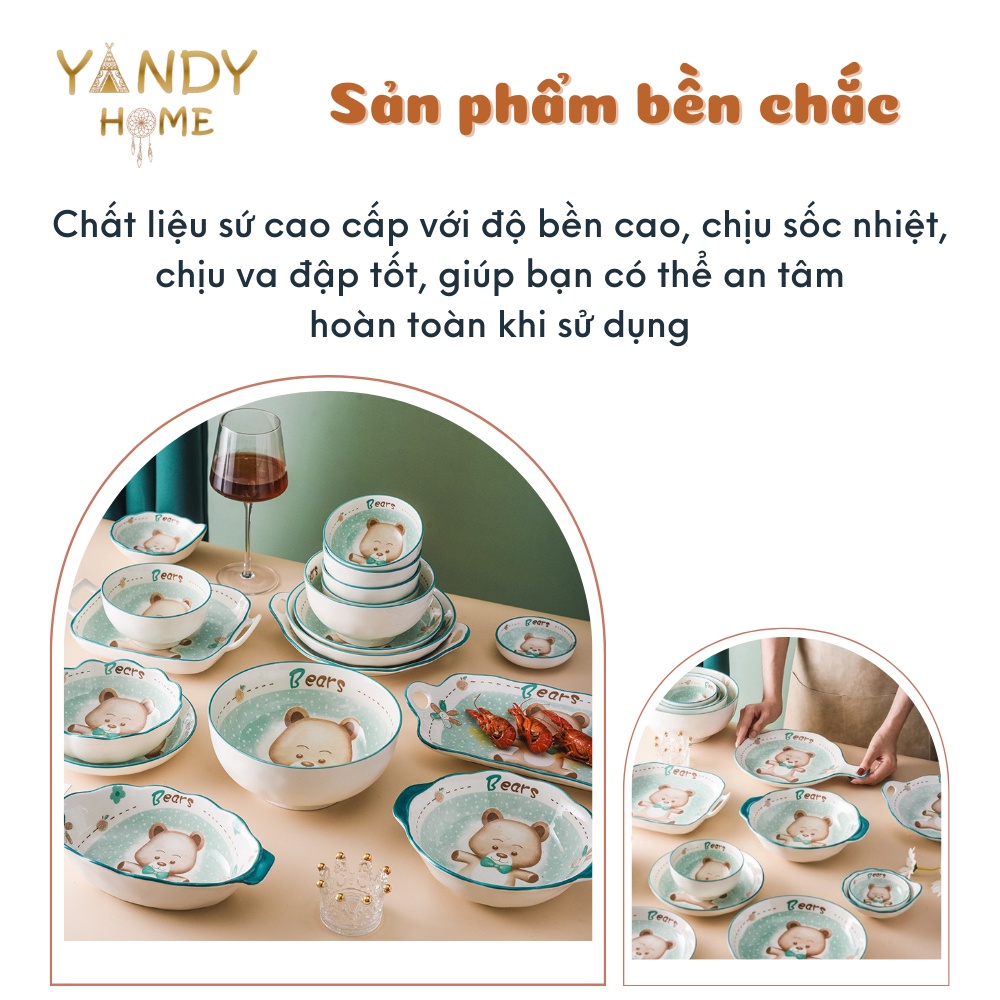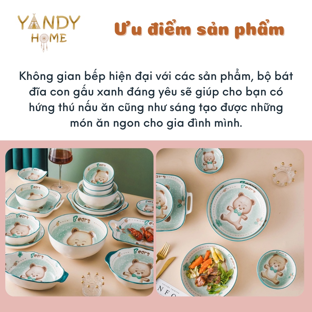 Nhà cửa & Đời sống > Bộ đồ bàn ăn > Tô || [Mã BMBAU50 giảm 7% đơn 150K] Bát đĩa tô chén gốm sứ YANDY HOME BB09 họa tiết gấu xanh 10 chi tiết men sáng bóngCòn hàng