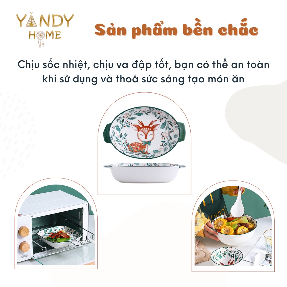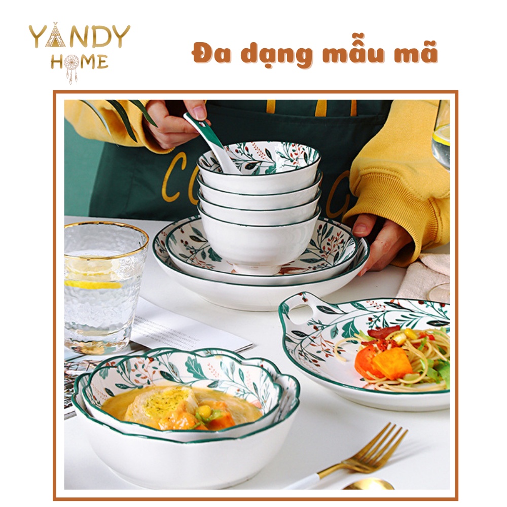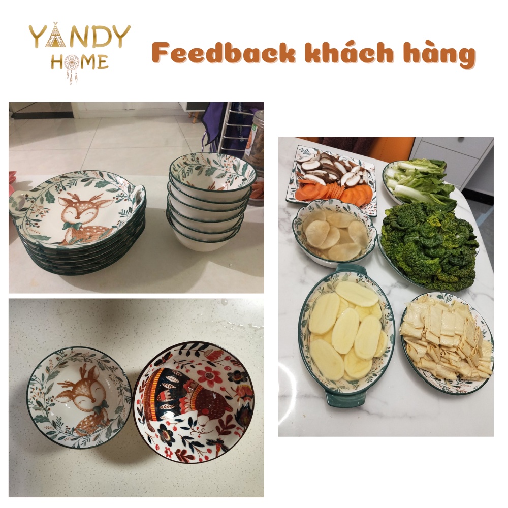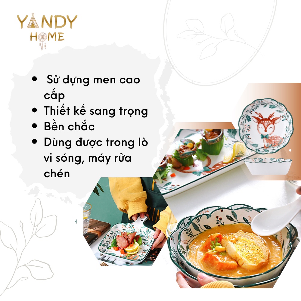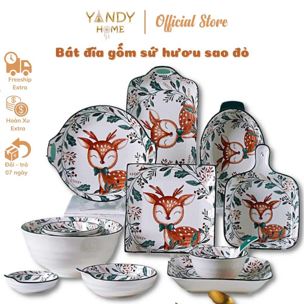 Nhà cửa & Đời sống > Bộ đồ bàn ăn > Dĩa || [Mã BMLTA50 giảm 10% đơn 150K] Bát đĩa tô chén gốm sứ YANDY HOME BB03 họa tiết hươu sao 18 món men bóngCòn hàng