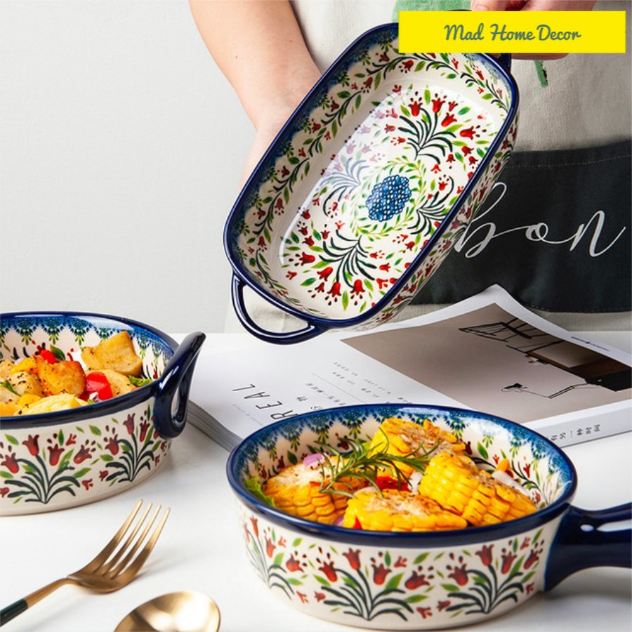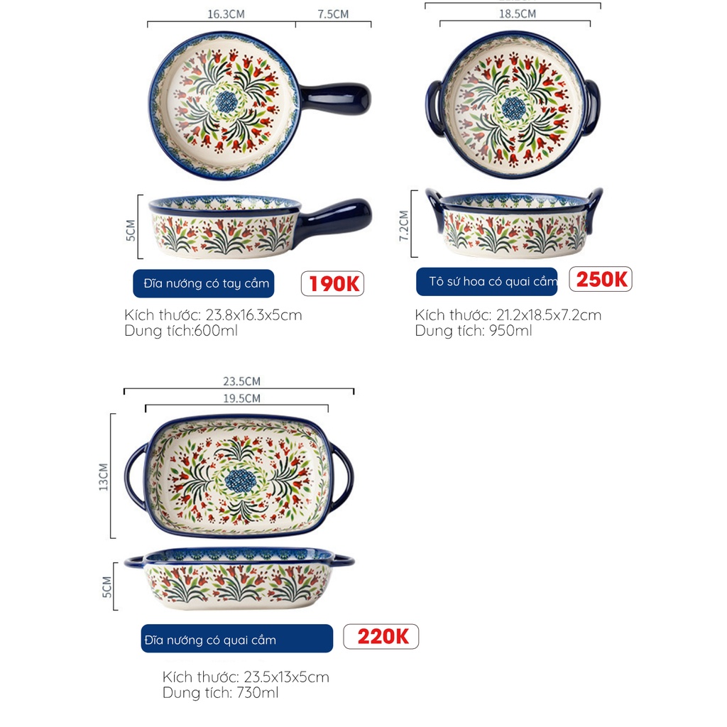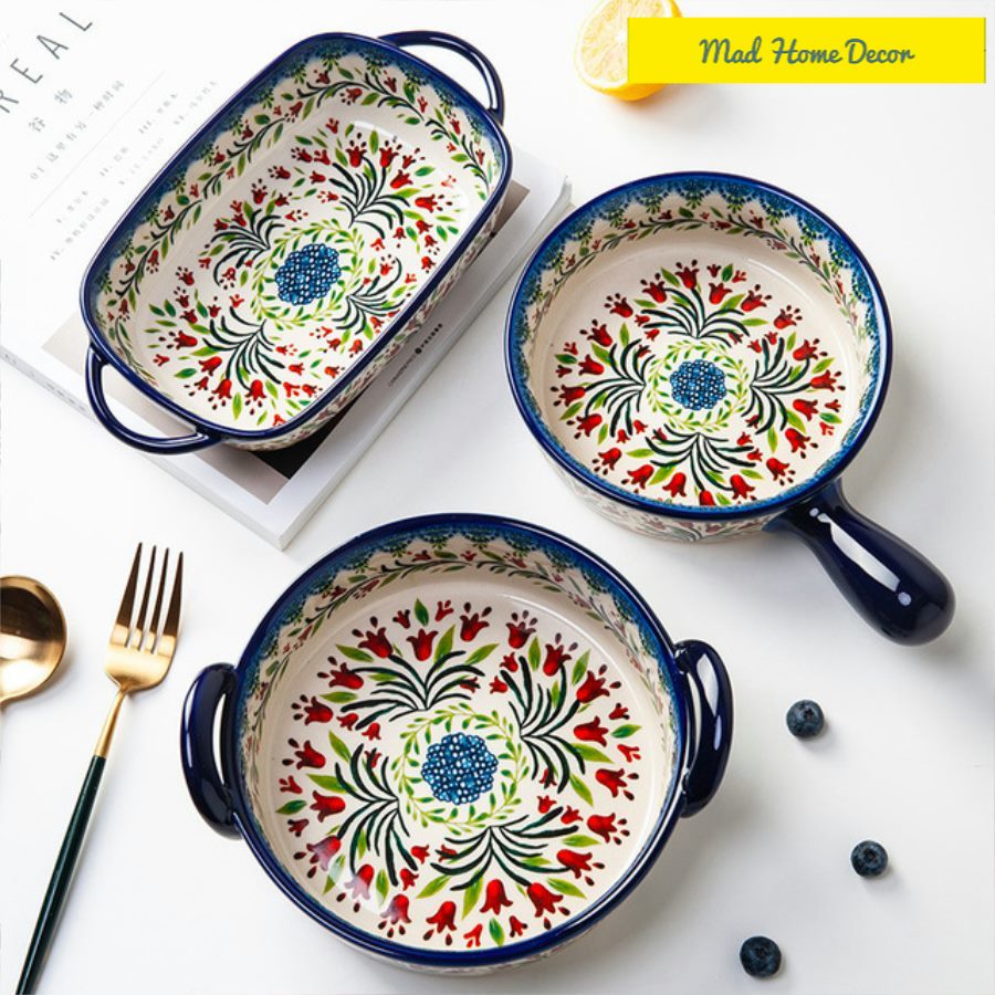 Nhà cửa & Đời sống > Bộ đồ bàn ăn > Dĩa || Bộ bát, đĩa, tô mĩ nghệ Châu Âu phong cách Bohemian-Họa tiết hoa lá BH1Còn hàng