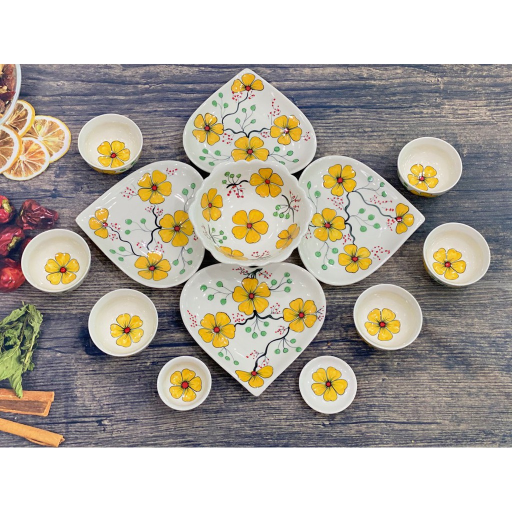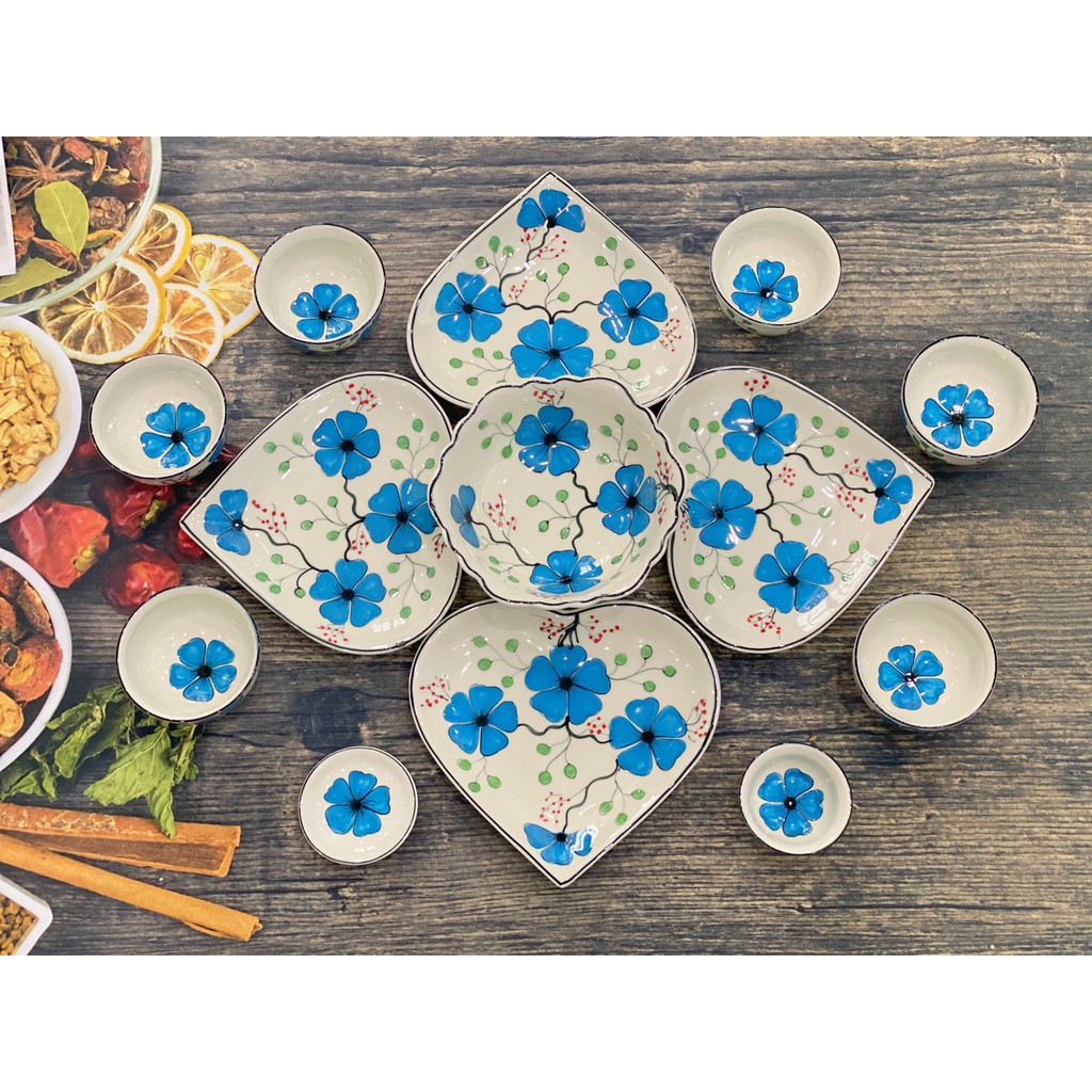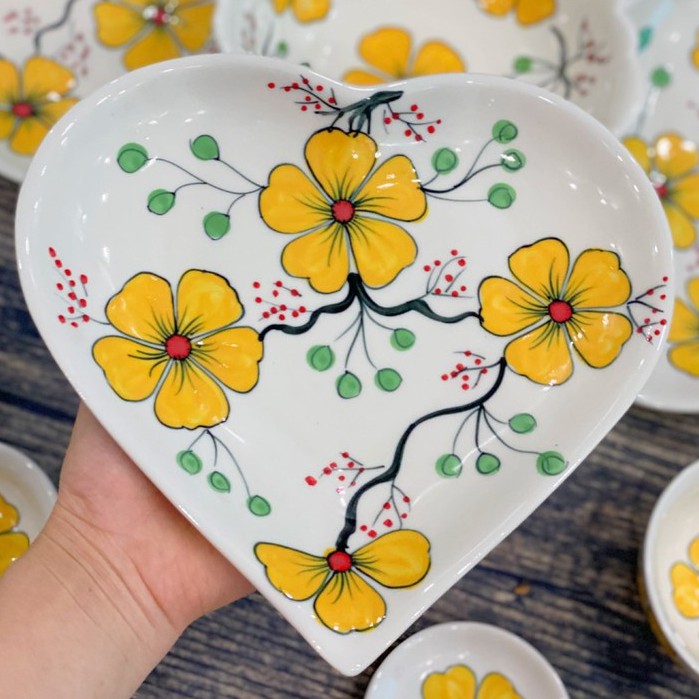 Nhà cửa & Đời sống > Bộ đồ bàn ăn > Tô || Bộ Bát Đĩa Trái Tim Vẽ Tay Nhiều Màu Hoa - Gốm Sứ Bát TràngCòn hàng