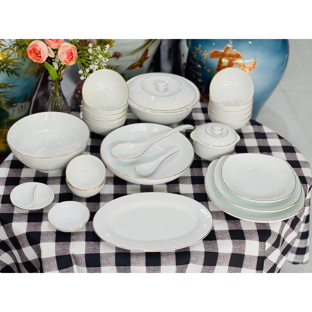Nhà cửa & Đời sống > Bộ đồ bàn ăn > Tô || Bộ Bát Đĩa Trắng Chỉ Vàng Kim Sang Trọng - Bát ăn cơm - Gốm Sứ Bát Tràng < Có bán Lẻ - Nhiều mẫu mã >Còn hàng
