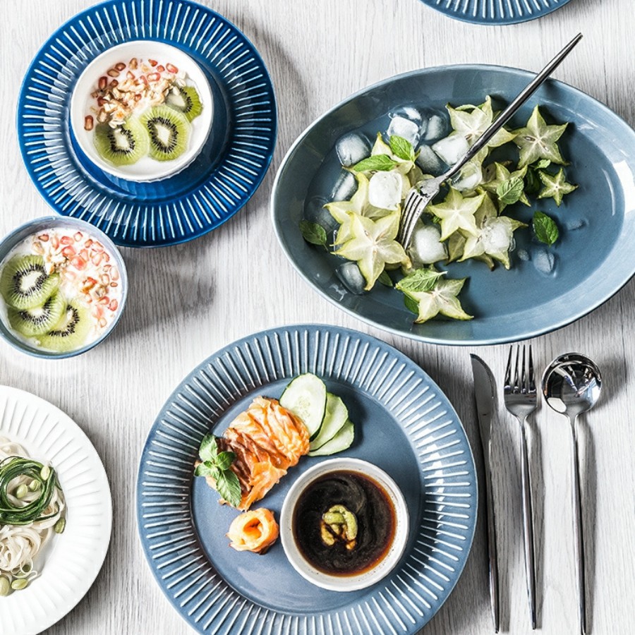Nhà cửa & Đời sống > Bộ đồ bàn ăn > Dĩa || Bộ bát đĩa trắng mix xanh cao cấp – 38 & 46 món cho 8-10 người – phong cách Bắc Âu (Hàng có sẵn)Còn hàng