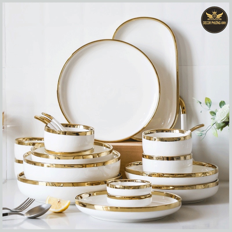Nhà cửa & Đời sống > Bộ đồ bàn ăn > Dĩa || ❤️ 𝙁𝙍𝙀𝙀 𝙎𝙃𝙄𝙋 ❤️ Bộ bát đĩa viền vàng cao cấp 32 món viền vàng cao cấp SANG TRỌNG, PHONG CÁCH CHẤU ÂU. DÙNG TIỆC GIA ĐÌNHCòn hàng