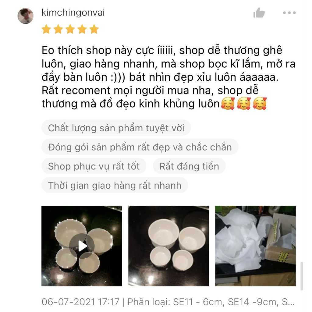 - Bát Cơm C06: Rộng 11.4cm, Cao 5.9cm, Nặng 200g (6 chiếc)