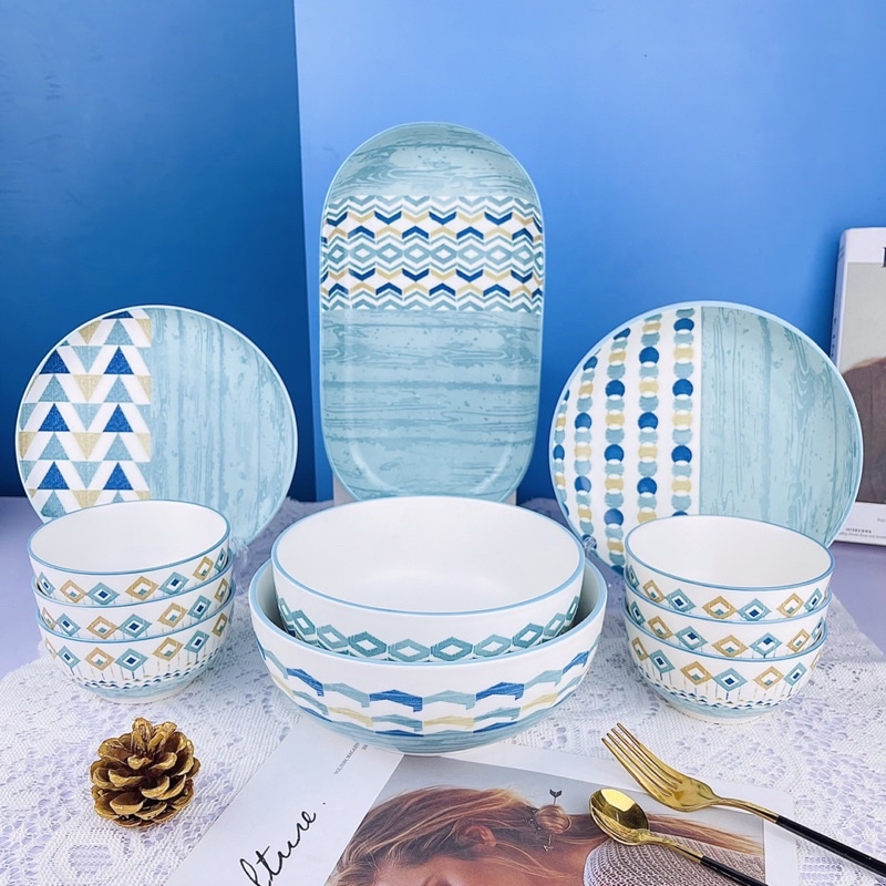 Nhà cửa & Đời sống > Bộ đồ bàn ăn > Tô || Bộ bát đĩa xanh đại dương phong cách Bắc Âu cao cấpCòn hàng