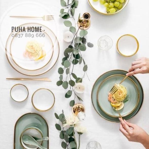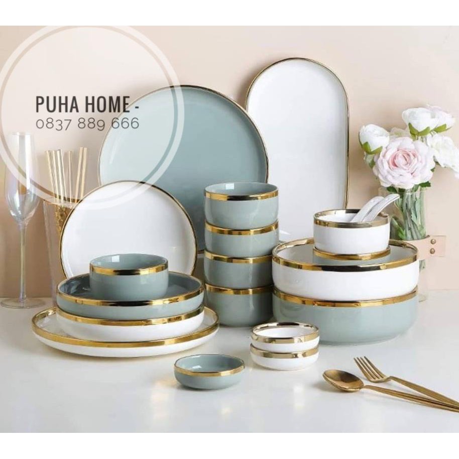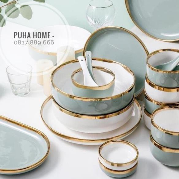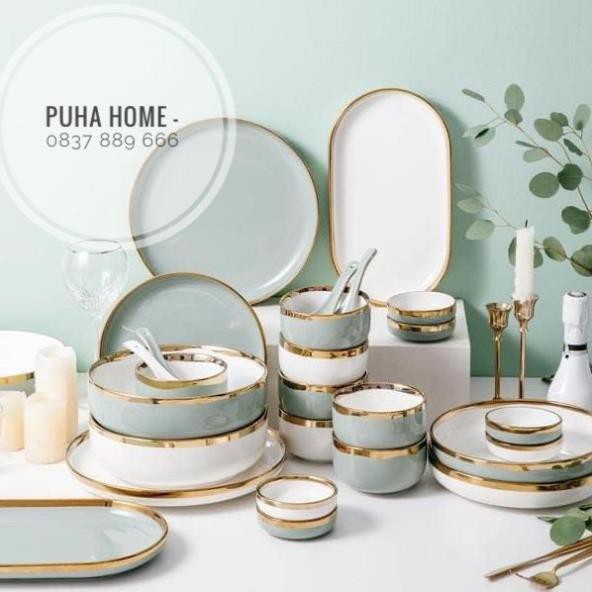 Bộ bát đĩa xanh ngọc mix trắng 26 món ☘𝘾𝘼𝙊 𝘾𝘼̂́𝙋☘ màu sắc độc đáo, sang trọng