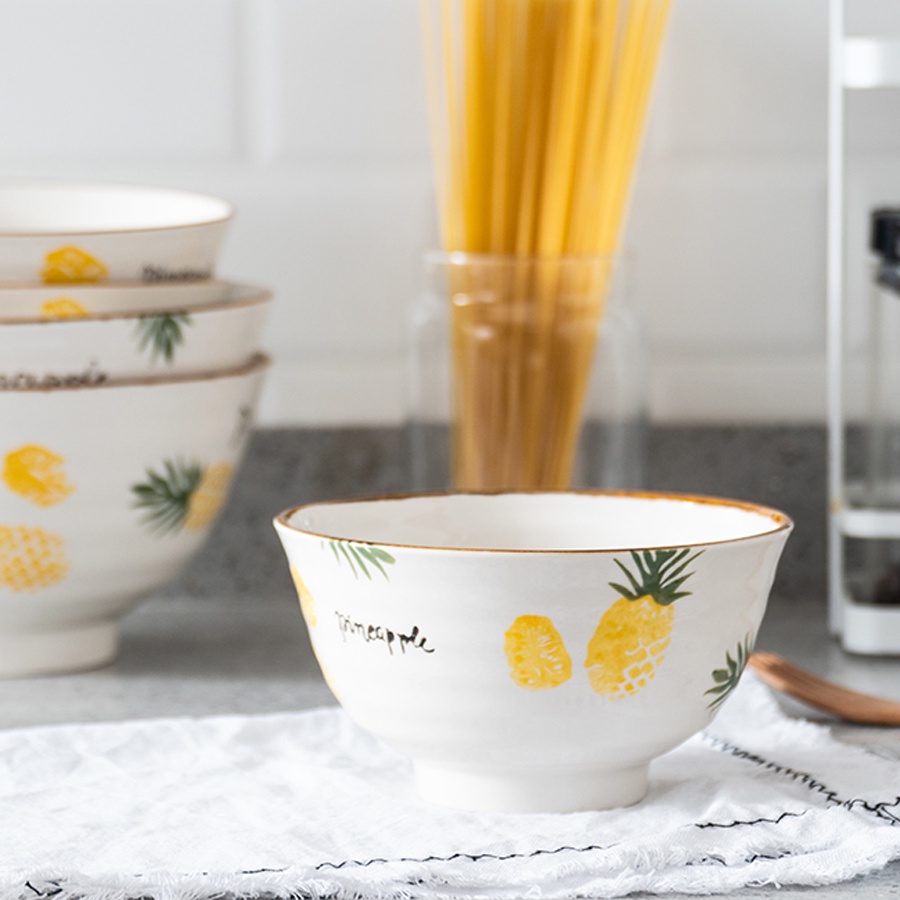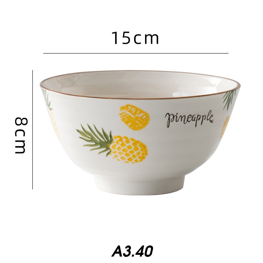 + Tên sản phẩm: Tô canh, bát đựng canh họa tiết dứa viền nâu_hàng có sẵn
