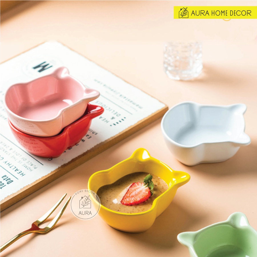 Giới thiệu Bát đựng nước chấm, tương, gia vị hình gấu heo dễ thương - Chất liệu gốm sứ an toàn sức khỏe - Nhiều màu sặc sỡ