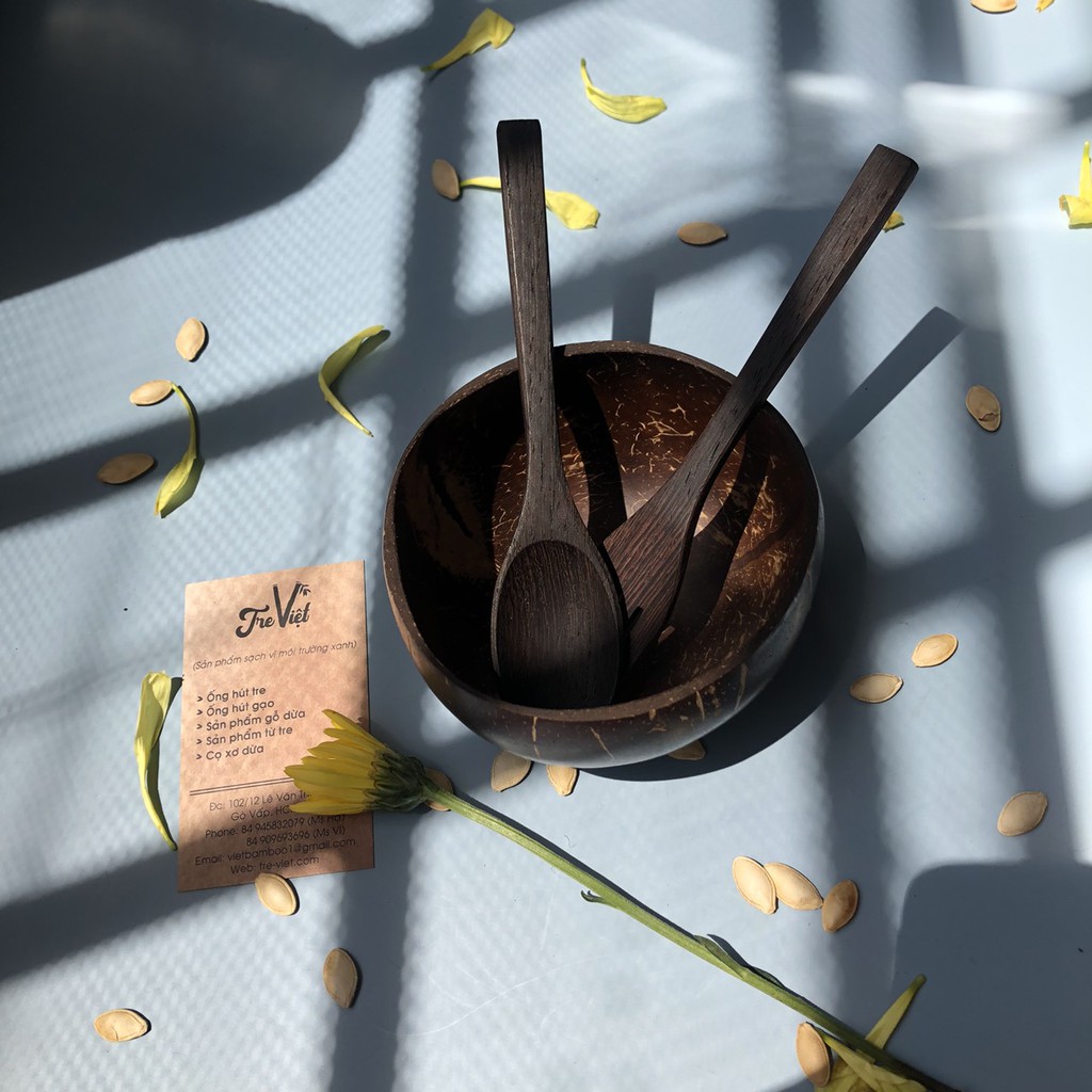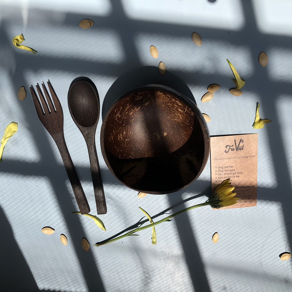 Nhà cửa & Đời sống > Bộ đồ bàn ăn > Tô || Bộ Bát gáo dừa nhỏ và Muỗng nĩa gỗ munCòn hàng