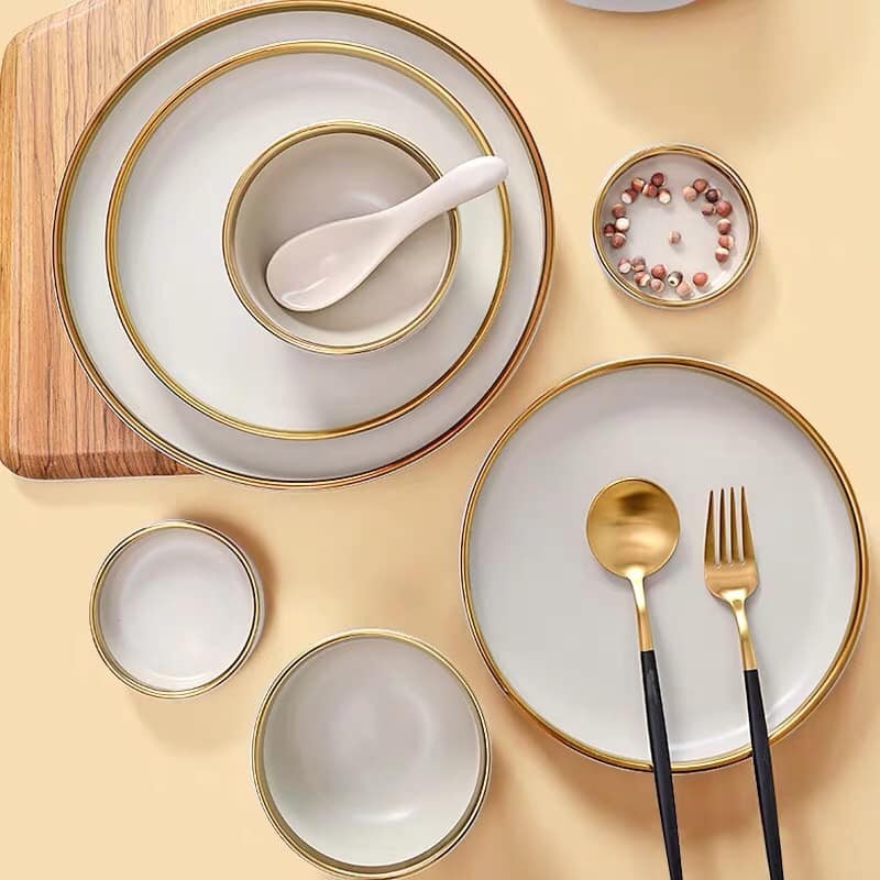 Nhà cửa & Đời sống > Bộ đồ bàn ăn > Tô || Bộ bát gia đình, bát sứ, bát viền vàng, bát sứ, tô mỳ, đĩa sâu lòng tinh tế và sang trọngCòn hàng