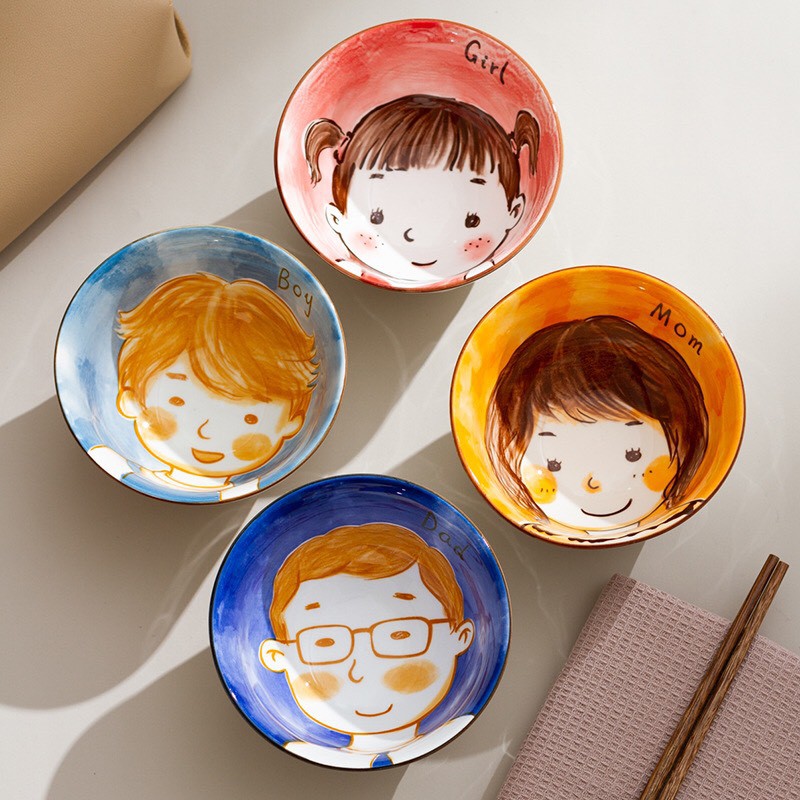 Tên sản phẩm : Bát Gia Đình Bát Sứ Bát Ăn Cơm Bộ Bát Đĩa Decor Bộ Chén Dĩa Sứ Cả Gia Đình Dễ Thương Cute B04- Chất liệu: Gốm Sứ cao cấp