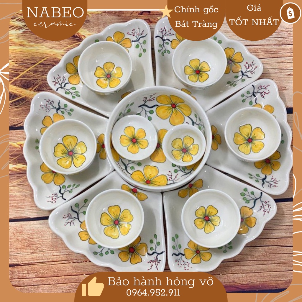 Bộ bát đĩa kiểu hoa mặt trời chuẩn hàng Bát Tràng chính gốc cao cấpSản phẩm bao gồm: