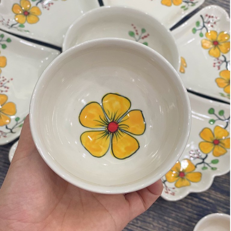 Nhà cửa & Đời sống > Bộ đồ bàn ăn > Tô || Bộ Bát Gia Tiên 6 Cánh Hoa Vàng Vẽ Tay - Bộ Bát Đĩa Cúng Gia Tiên - Gốm Sứ Bát TràngCòn hàng