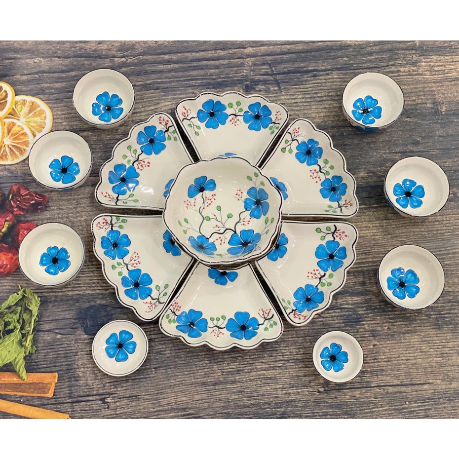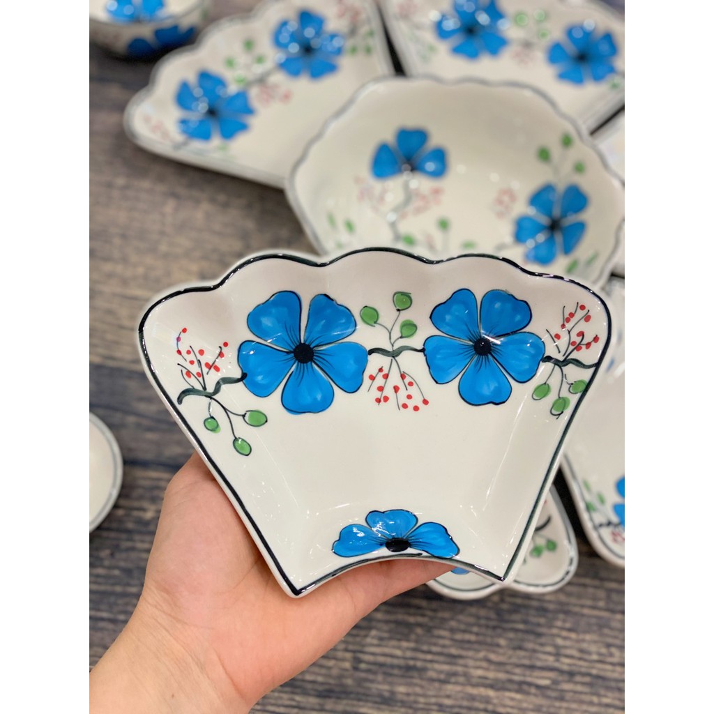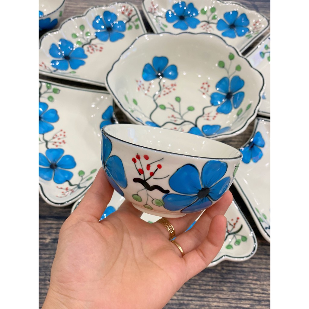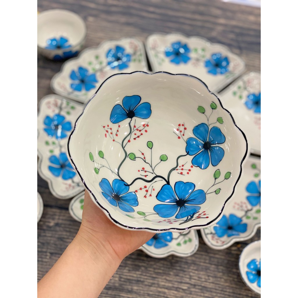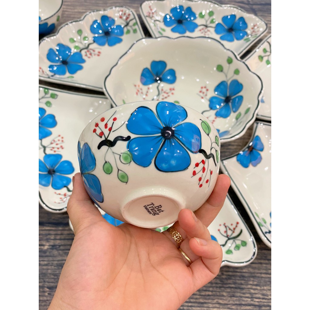 Bộ Bát Gia Tiên 6 Cánh Hoa Xanh Vẽ Tay - Bộ Bát Đĩa Cúng Gia Tiên - Gốm Sứ Bát Tràng