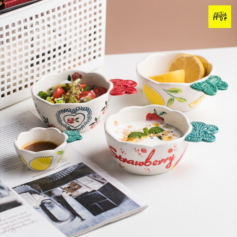 Nhà cửa & Đời sống > Bộ đồ bàn ăn > Tô || Bát gia vị, bát chấm, bát đựng đồ ăn có tay cầm họa tiết chanh và cherry 35ml & 200mlCòn hàng