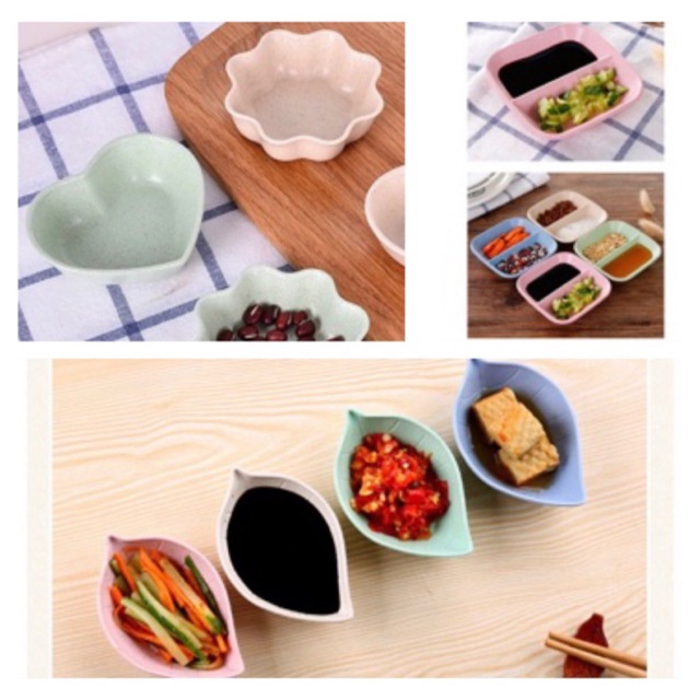 bát nhựa chiếc lá kích thước 11x7 cm thích hợp để đựng các loại giá vị và các món ăn phụBát gia vị nước chấm nhiều mẫu, nhiều màu sắc