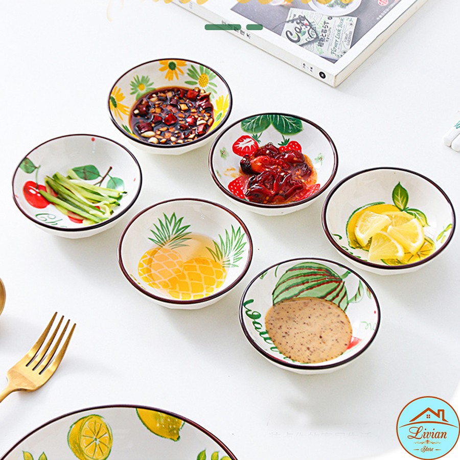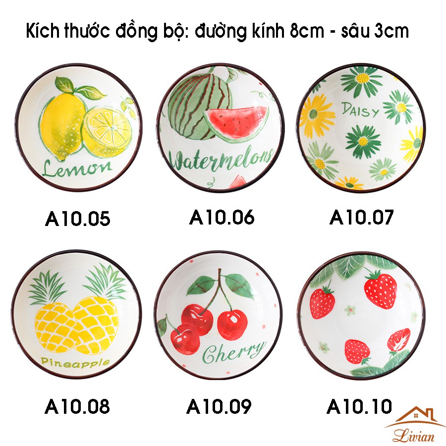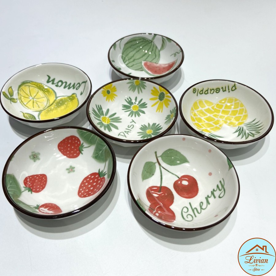 Nhà cửa & Đời sống > Bộ đồ bàn ăn > Tô || Bát gia vị tròn 9.8cm họa tiết hoa quả dễ thươngCòn hàng
