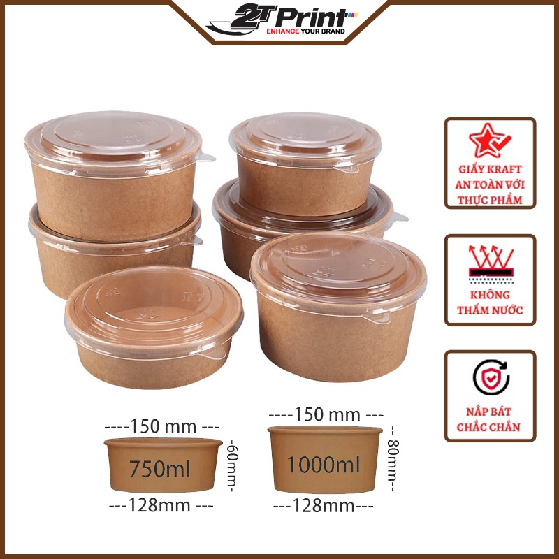 Bát giấy hay tô giấy là sản phẩm bát tiện dụng dùng 1 lần bằng chất liệu Po, Kraft. So với sản phẩm bát nhựa hay túi nilon đựng đồ ăn khi có nhu cầu vận chuyển hoặc dùng ăn ngay thì an toàn, vệ sinh và chất lượng hơn rất nhiều. Đặc biệt sản phẩm từ chất liệu giấy rất thân thiện với môi trường trong quá trình sử dụng.Bát giấy kraft nâu chất lượng tại 2TPrint hiện có các loại: