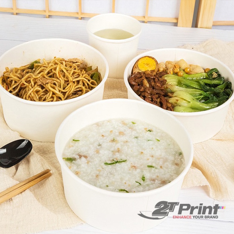 Bát giấy trắng 750ml, 1000ml đựng đồ ăn nóng, lạnh - Bát giấy dùng 1 lần cao cấp 2TPrint