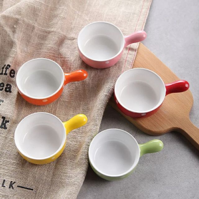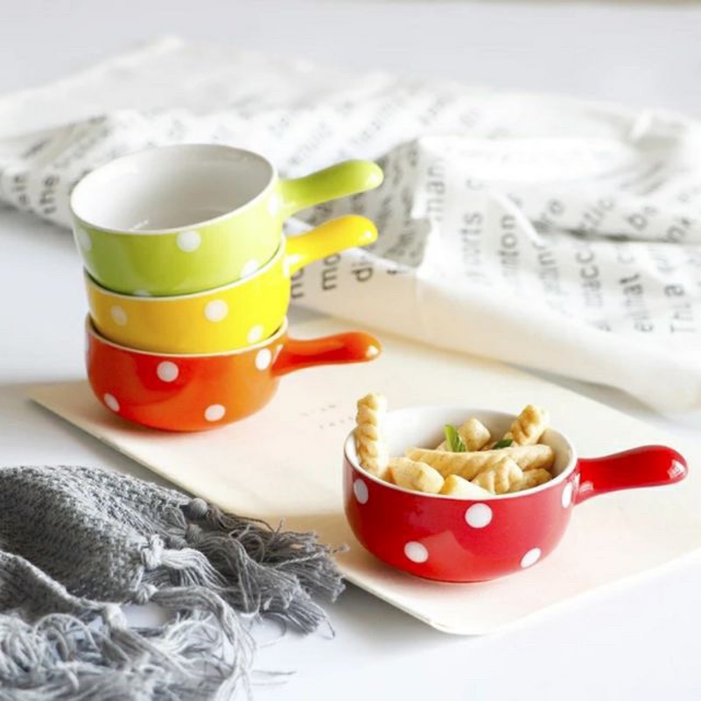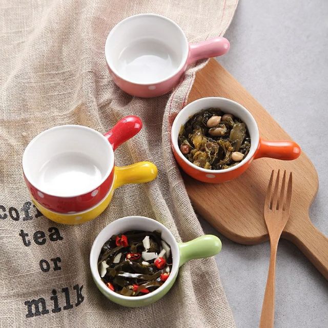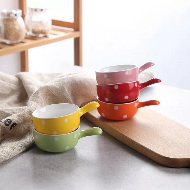 Nhà cửa & Đời sống > Bộ đồ bàn ăn > Dĩa || Bát gốm sứ chấm bi có tay cầmCòn hàng