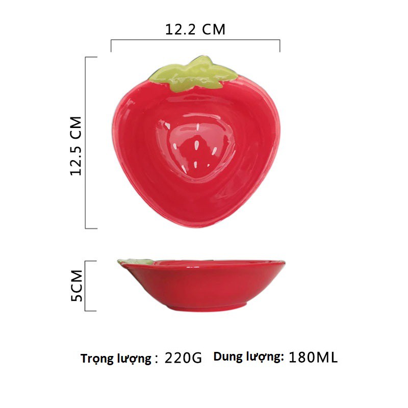 Tên Sản phẩm: Bát gốm sứ tráng men hình trái dâu tây trọng lượng 220g, dung tích 180ml, kích thước 12,2*12,5*5cm