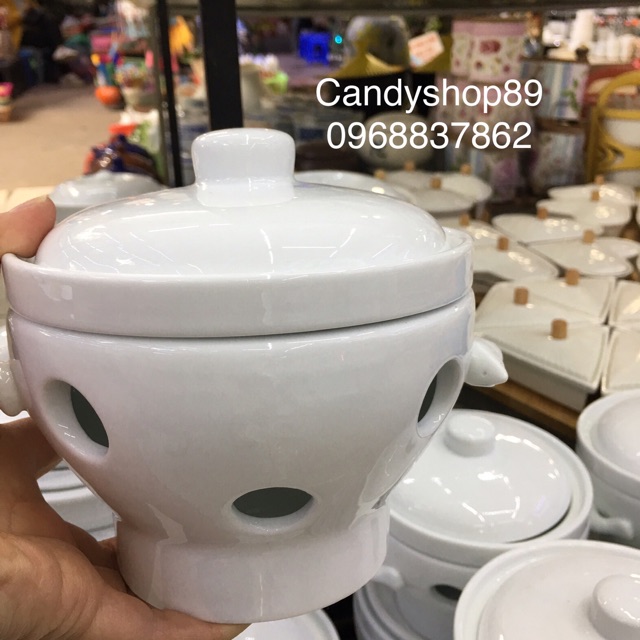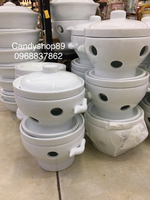 Bát hâm nóng thức ăn có thể đùng trong lò vi sóng, sản phẩm được thiết kế 02 lớp, lớp trên là bát tô canh đựng các món ăn như: Canh, súp, thịt hầm, ..phía dưới là bếp đun được làm dầy dặn bằng sứ. >>> Giữa hai lớp có khoảng cách 5cm.