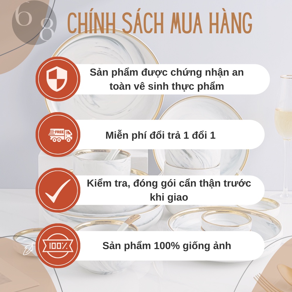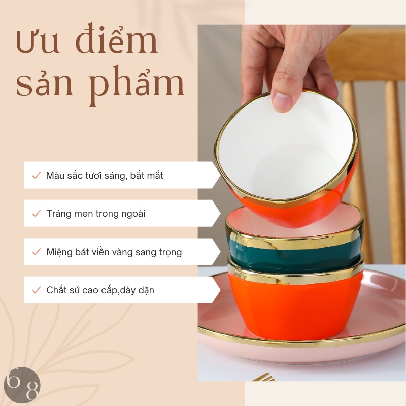 - Bộ bát được thiết kế sang trọng, hiện đại cùng màu sắc trang nhã, viền mạ vàng nổi bật chắc chắn sẽ tạo thêm sự trang trọng, lịch thiệp cho bàn ăn