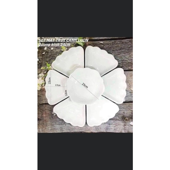 1 bộ có 1 bát tròn hoa kt 25cm, 6 đĩa kt 23cm