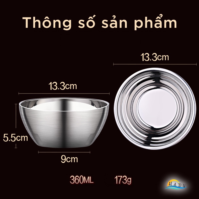 Nhà cửa & Đời sống > Bộ đồ bàn ăn > Tô || Bát inox 2 lớp cách nhiệt kháng khuẩn chống bỏng tay chén inox 316 ăn cơm cong mềm mại thanh lịch sang trọng HADUCòn hàng