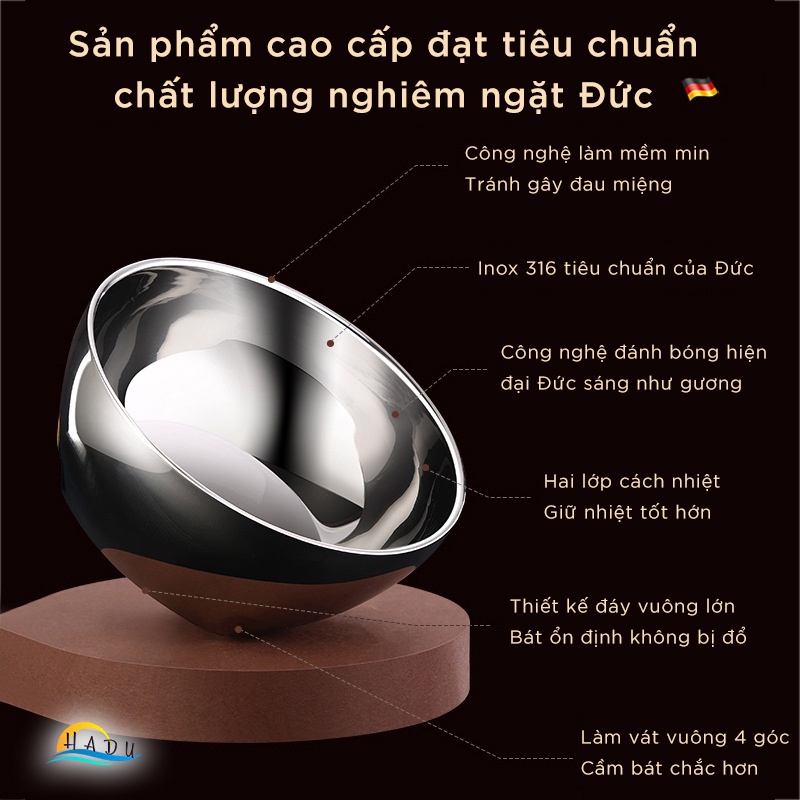 Bát inox 2 lớp cách nhiệt kháng khuẩn chống bỏng tay chén inox 316 ăn cơm cong mềm mại thanh lịch sang trọng HADU✔️Tính năng - Lợi ích sản phẩm:
