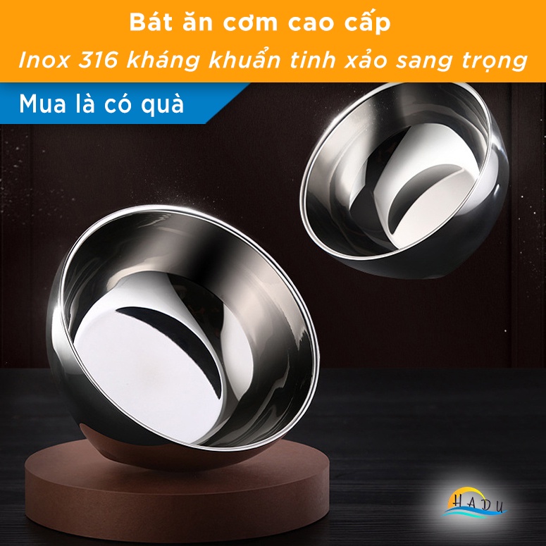 Giới thiệu Bát inox 2 lớp cách nhiệt kháng khuẩn chống bỏng tay chén inox 316 ăn cơm cong mềm mại thanh lịch sang trọng HADU