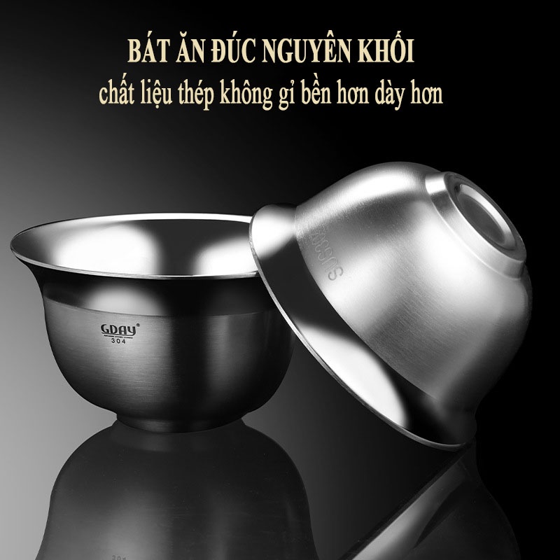 Bát inox, bát ăn inox 304 hoàng cung , cứng, bền, cách nhiệt GDAY - LOKING